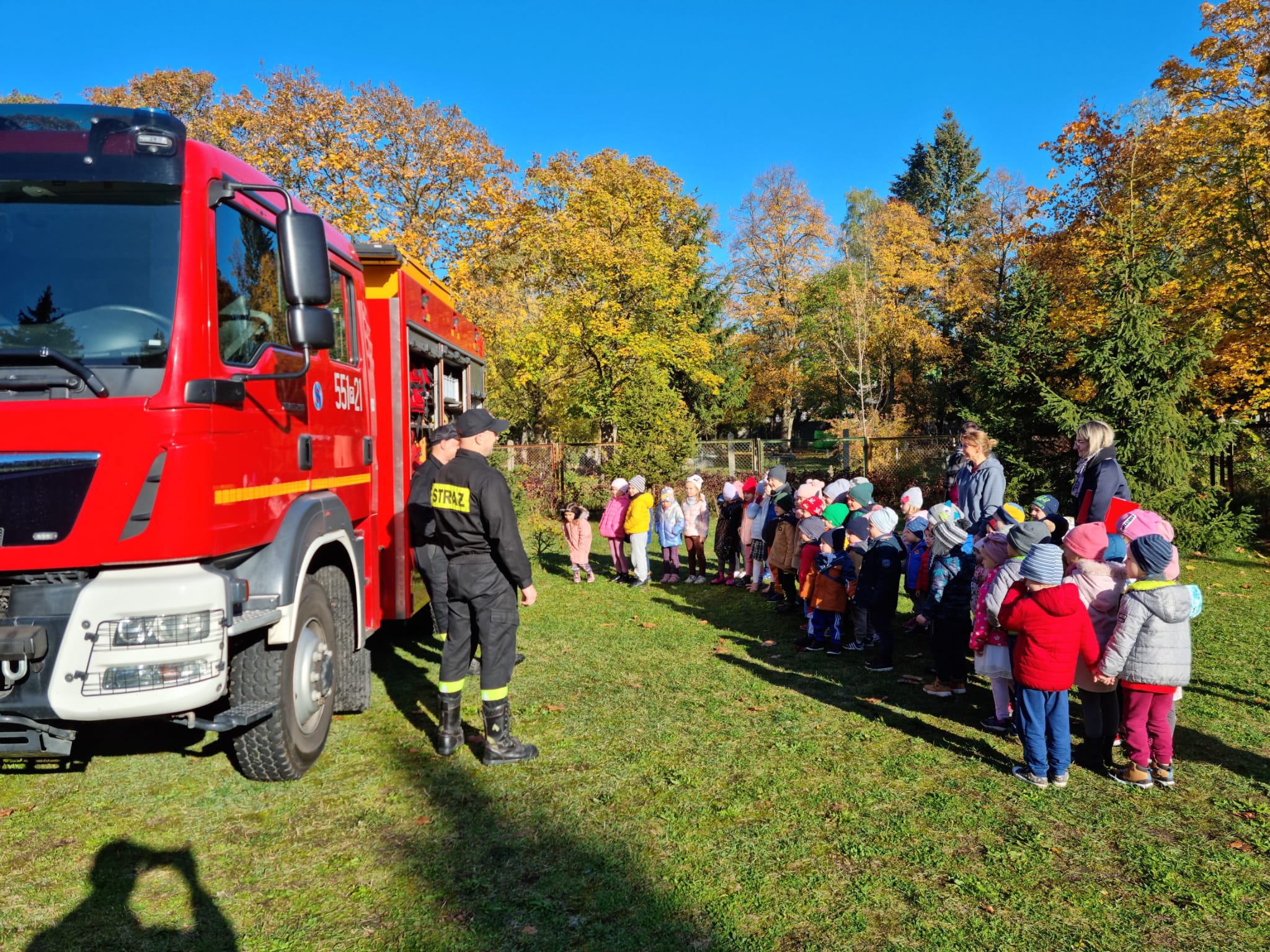 Po zakończeniu ćwiczeń odbyła się krótka pogadanka z przedszkolakami oraz pokaz sprzętu. Poruszano problematykę bezpieczeństwa pożarowego i prawidłowych zachowań w czasie wystąpienia niebezpieczeństwa. Przedstawiono specyfikę pracy strażaków oraz zaprezentowano sprzęt ratowniczo-gaśniczy. Spotkanie odbyło się na placu przy budynku przedszkola. Podczas pogadanki dzieci wykazały się znajomością numerów alarmowych oraz szeroką pojętą wiedzą na temat zagrożeń występujących podczas działań ratowniczo- gaśniczych straży pożarnej.