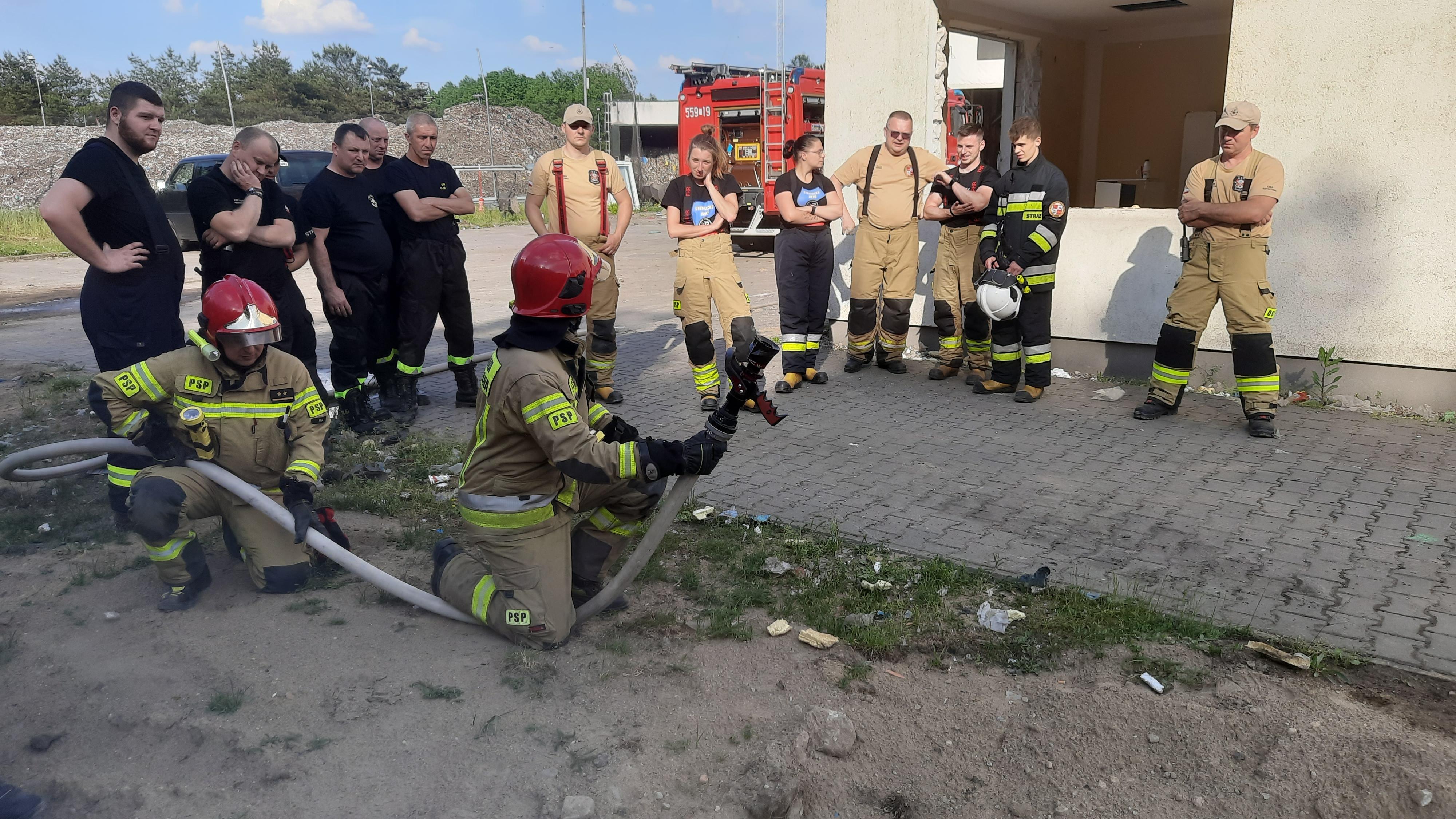 W dniach od 20 do 22 maja 2024 roku w jednym z budynków przeznaczonych do rozbiórki na terenie składowiska odpadów w Kłodzie przeprowadzono ćwiczenia oraz warsztaty z zakresu gaszenia pożarów wewnętrznych.