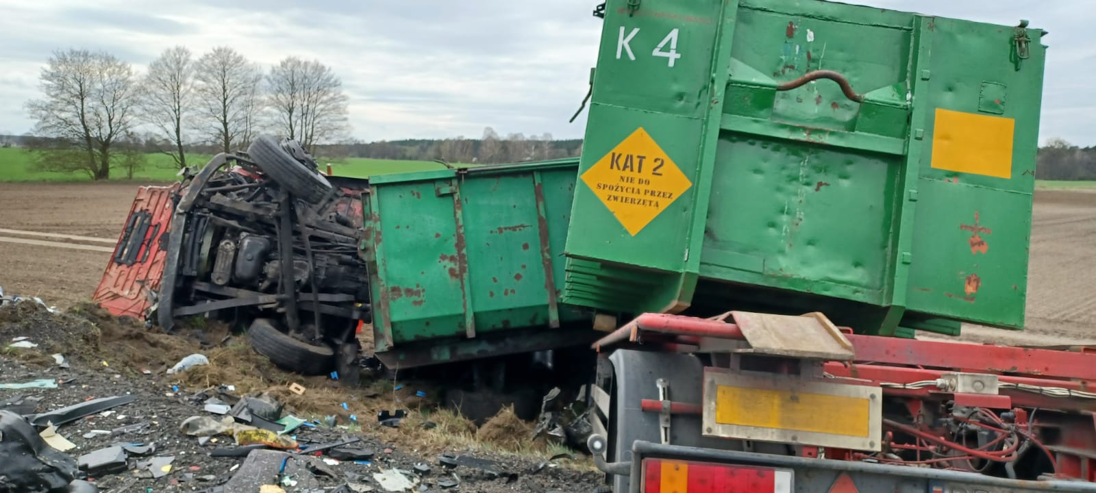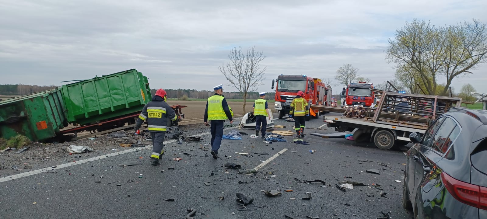 W wyniku zdarzenia jedna osoba zmarła, druga natomiast z obrażeniami została zabrana do szpitala. Na czas prowadzenia działań ruch na drodze został całkowicie zablokowany, a policja wyznaczyła objazd. Działania straży pożarnej polegały na zabezpieczeniu miejsca zdarzenia oraz wykonaniu dostępu do osób poszkodowanych.