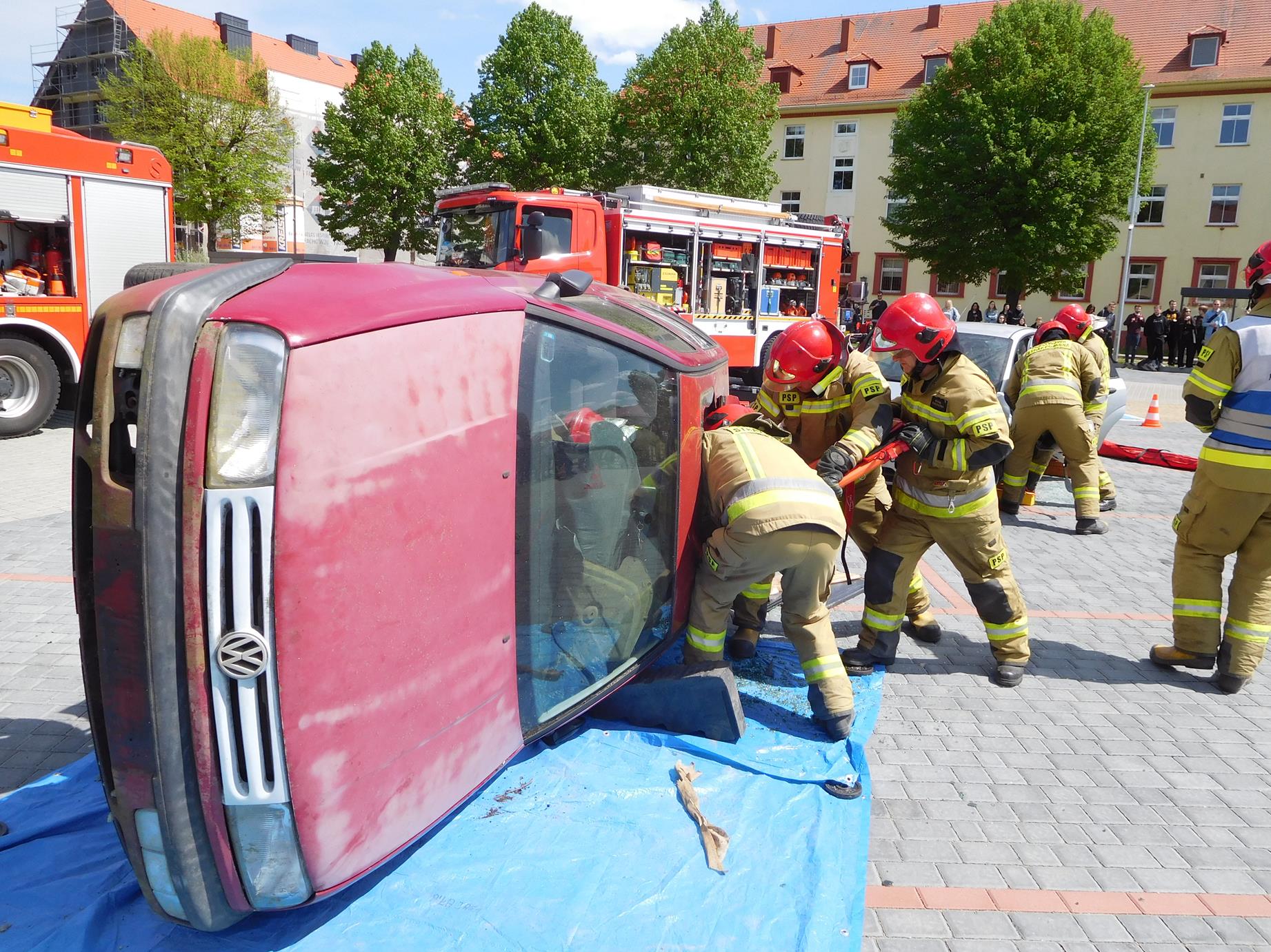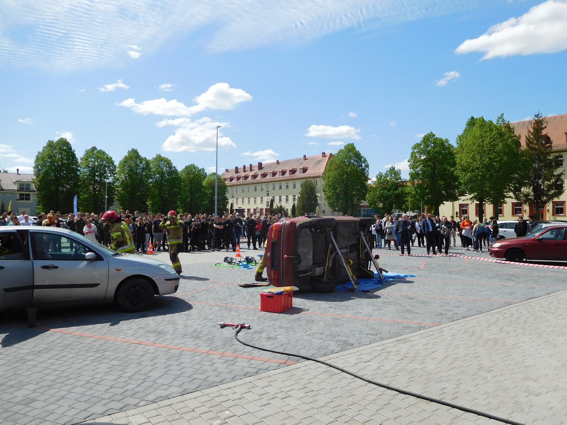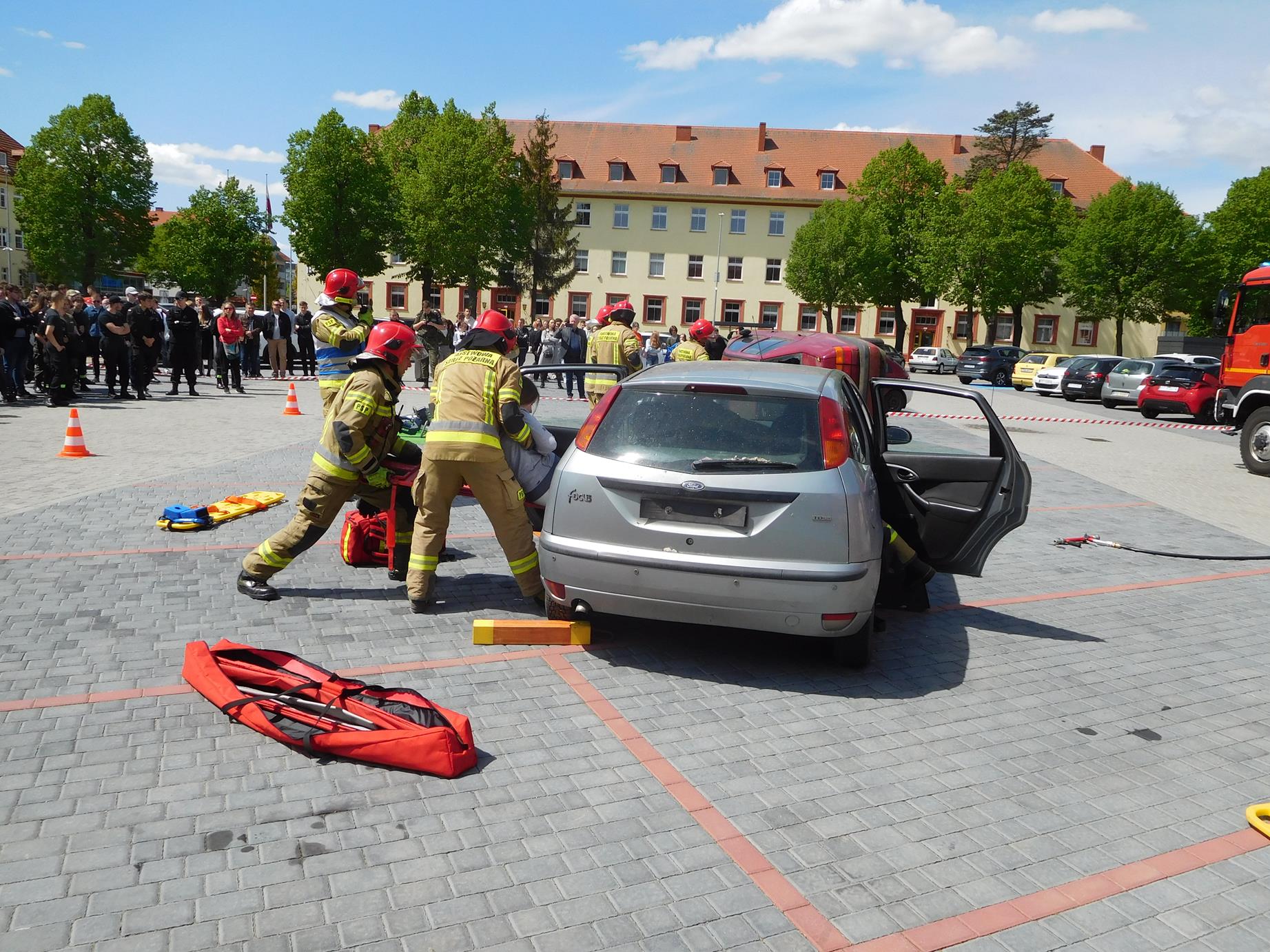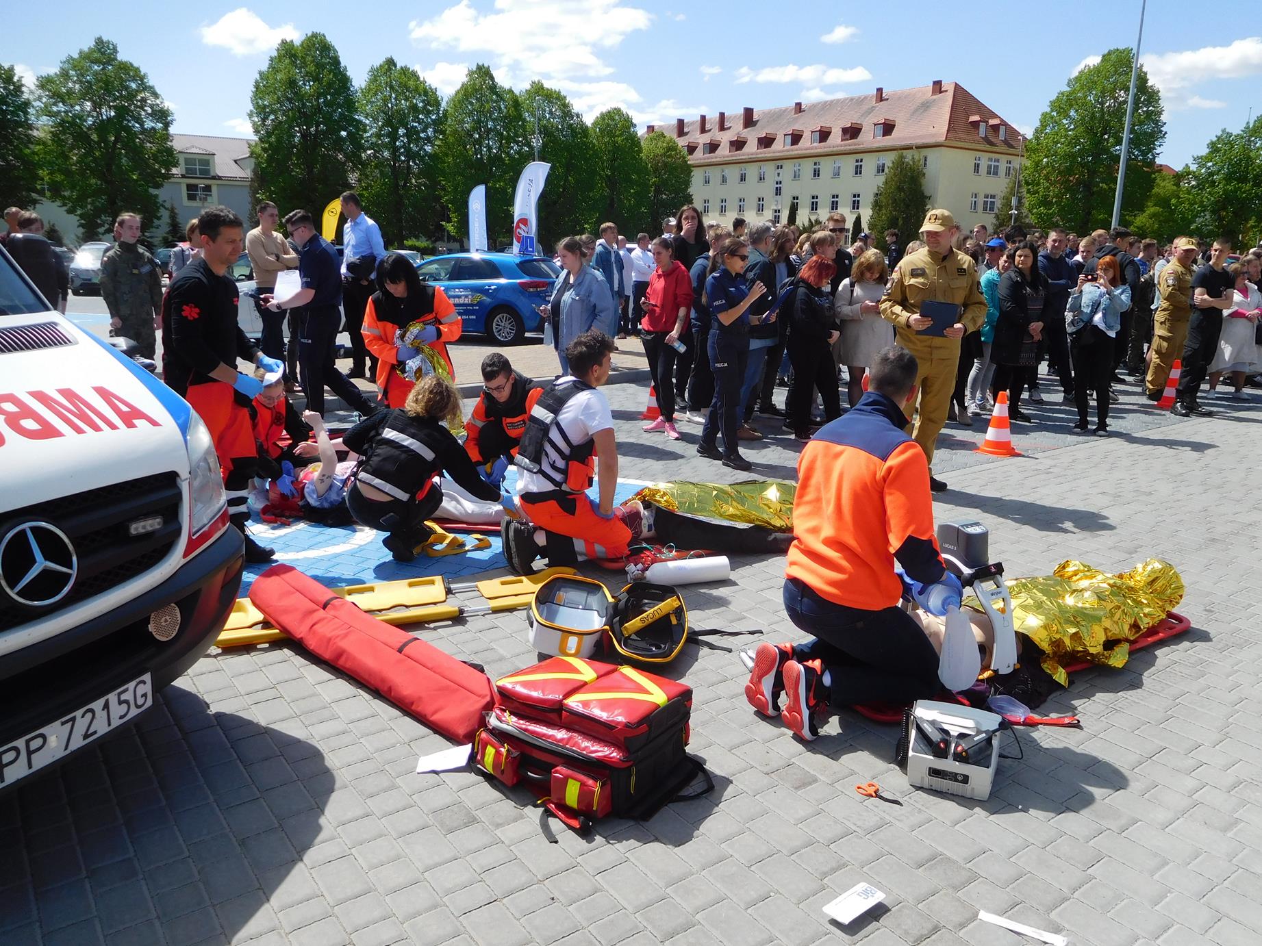 Przygotowano pokaz w części praktycznej, który dotyczył wypadku drogowego. W inscenizacji wykorzystano dwa samochody osobowe, dwa fantomy we współpracy z pracownikami oraz studentami ANS.