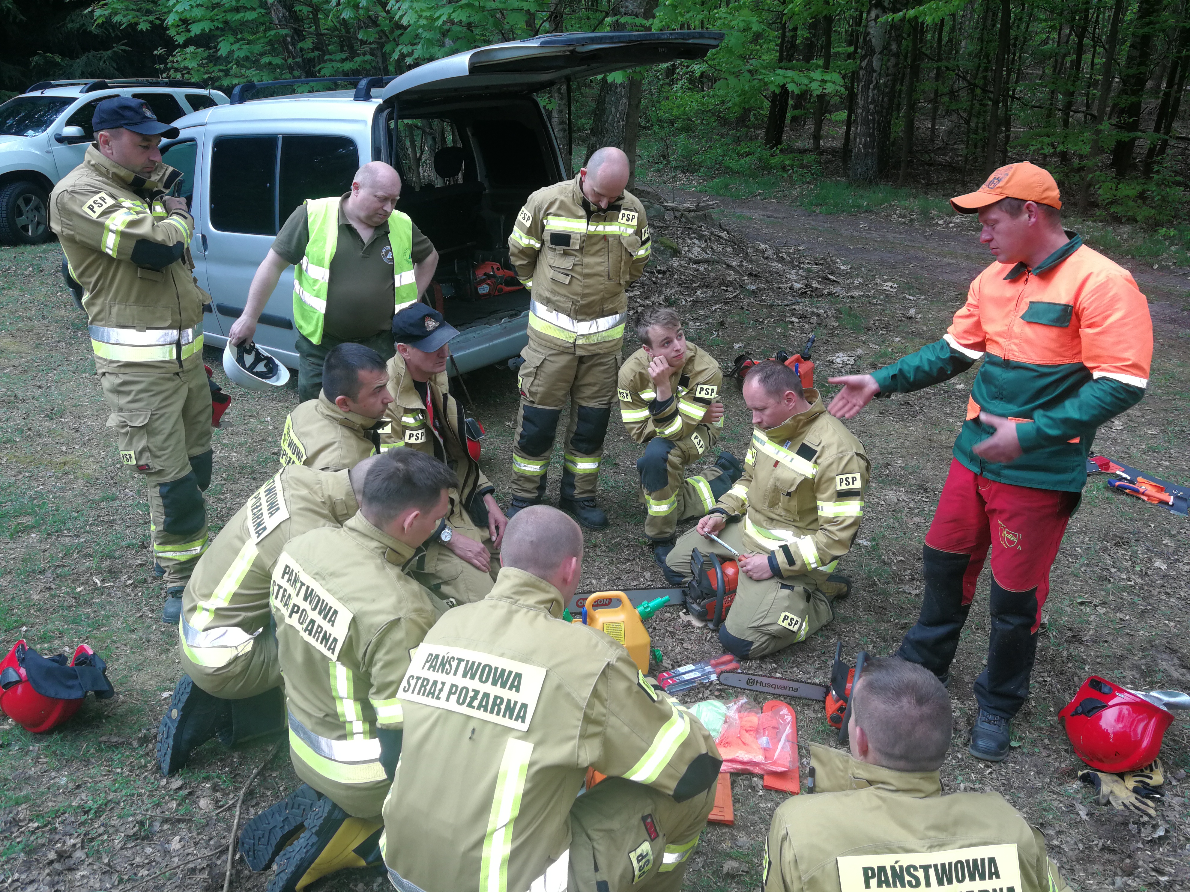 W dniach 9-11 maja na terenie Leśnictwa Jeziorki strażacy z Jednostki Ratowniczo-Gaśniczej nr 2 w Pile uczestniczyli w szkoleniu z zakresu obsługi pilarek mechanicznych do ścinki drzew.