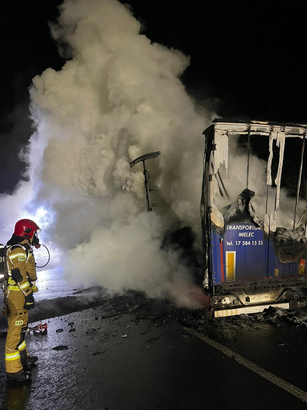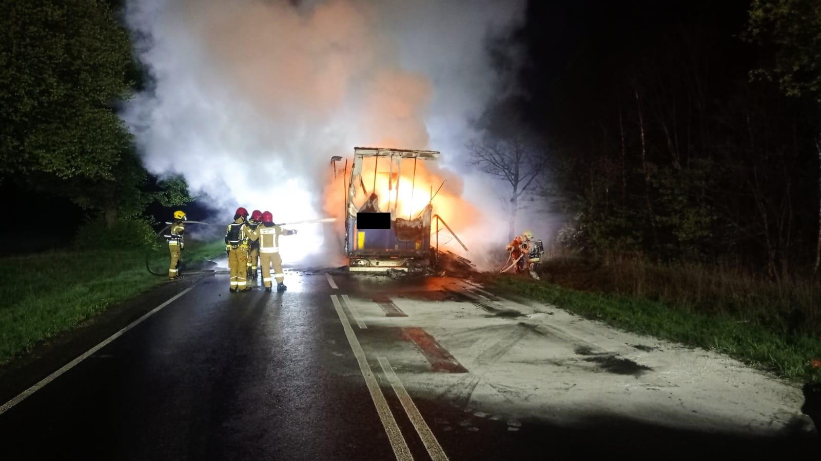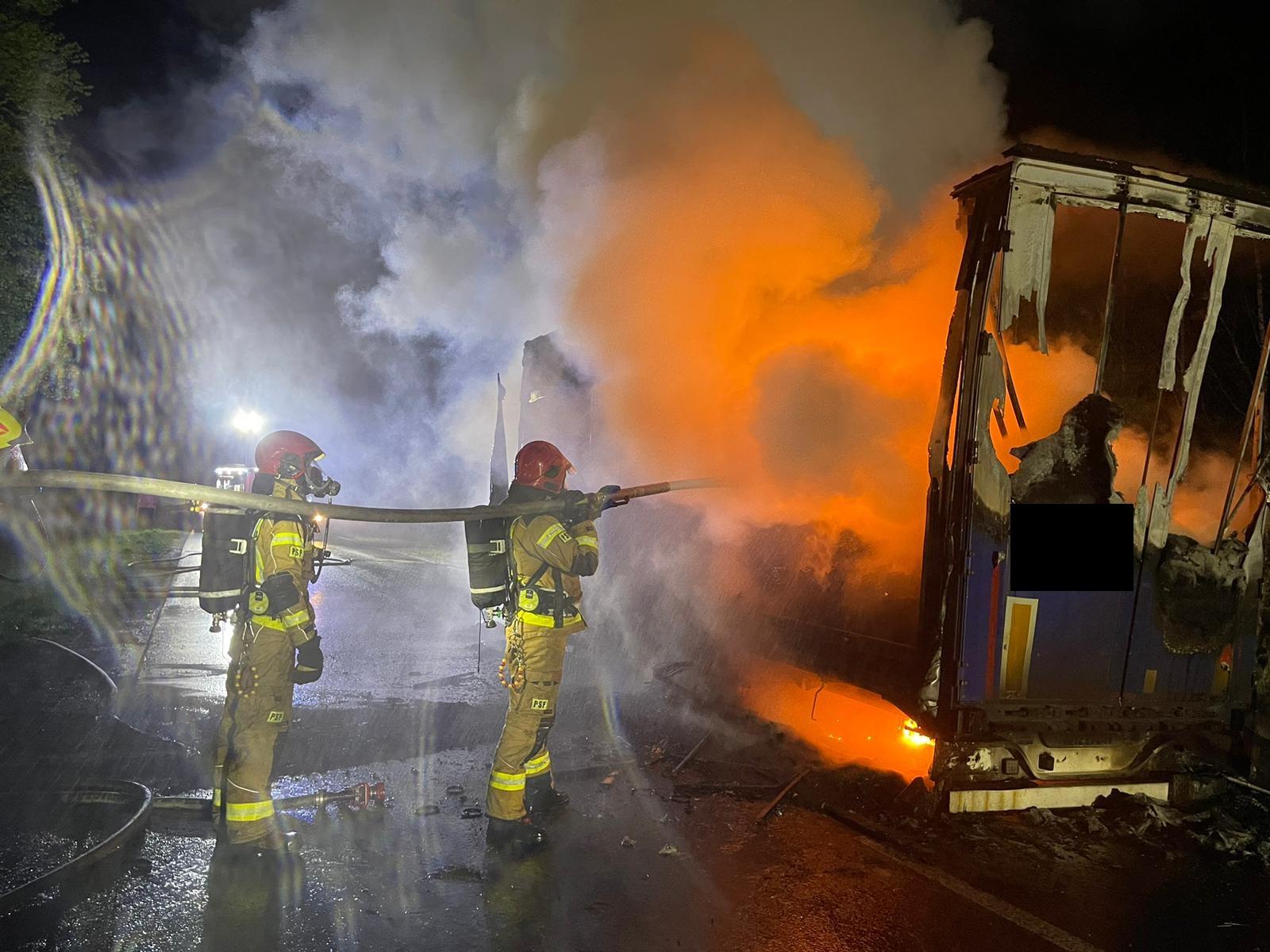 Pożar przyczepy samochodu ciężarowego na krajowej 10
