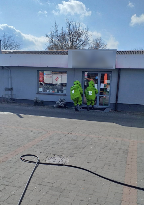 Po przyjeździe pierwszych zastępów PSP na miejsce zdarzenia podjęto decyzję o ewakuacji osób postronnych oraz zabezpieczeniu obiektu do czasu przybycia Specjalistycznej Grupy Ratownictwa Chemiczno-ekologicznego Piła. Ratownicy ubrani w sprzęt ochrony dróg oddechowych oraz chemoodporne ubrania przeszukali wszystkie pomieszczenia w sklepie. Przeprowadzono pomiary na obecność substancji niebezpiecznych za pomocą mierników wielo i jednogazowych. Nie wykryto żadnych substancji niebezpiecznych. Po dokładnym zbadaniu sklepu, przeprowadzono dekontaminację ratowników i sprzętu, a obiekt powrócił do normalnego funkcjonowania.