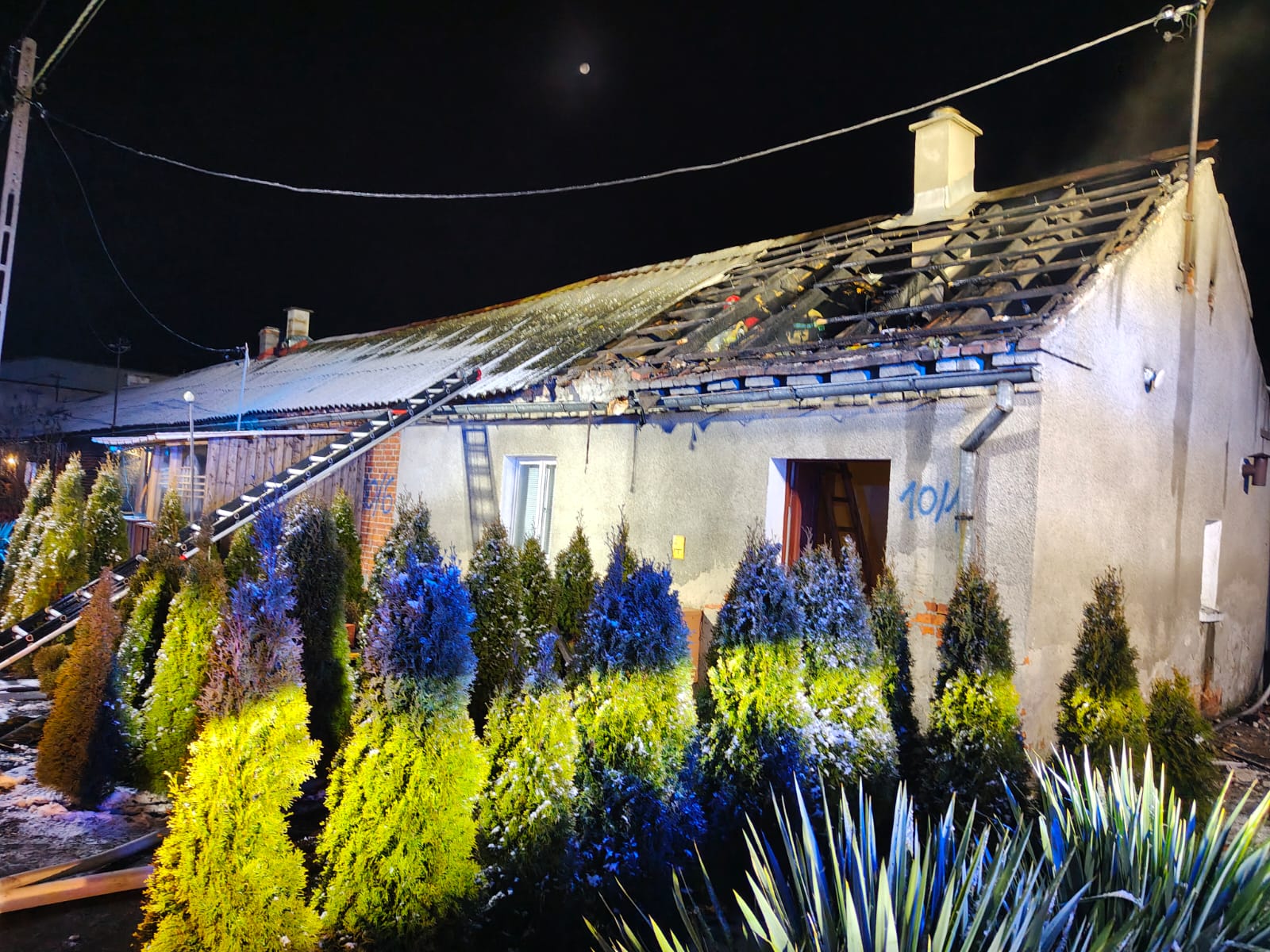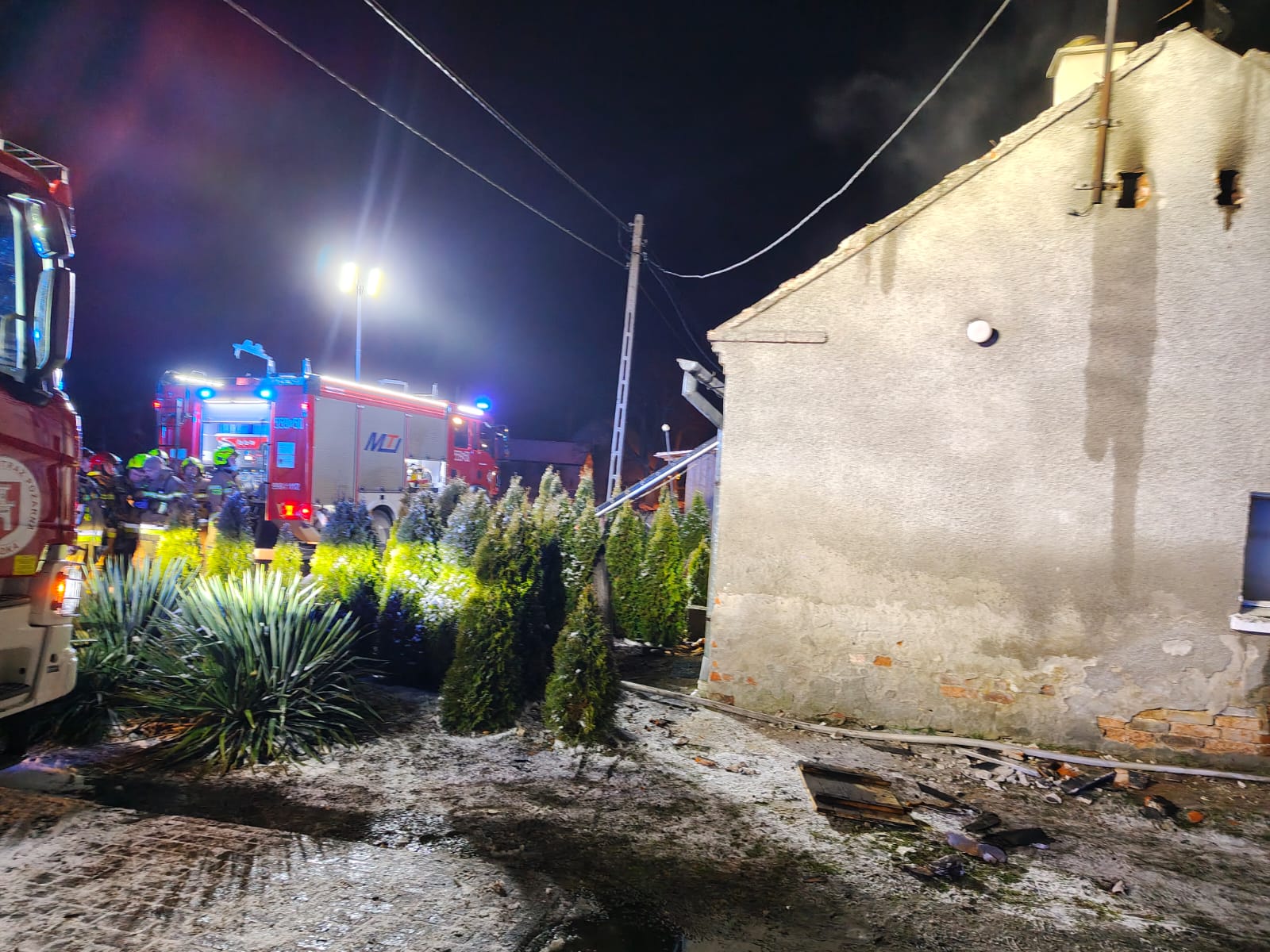 Po przybyciu na miejsce zdarzenia strażaków stwierdzono, że w budynku występuje silne zadymienie, a na poddaszu pojawiają się płomienie. Wszystkie osoby zamieszkujące obiekt ewakuowały się na zewnątrz, jeszcze przed przybyciem straży pożarnej.