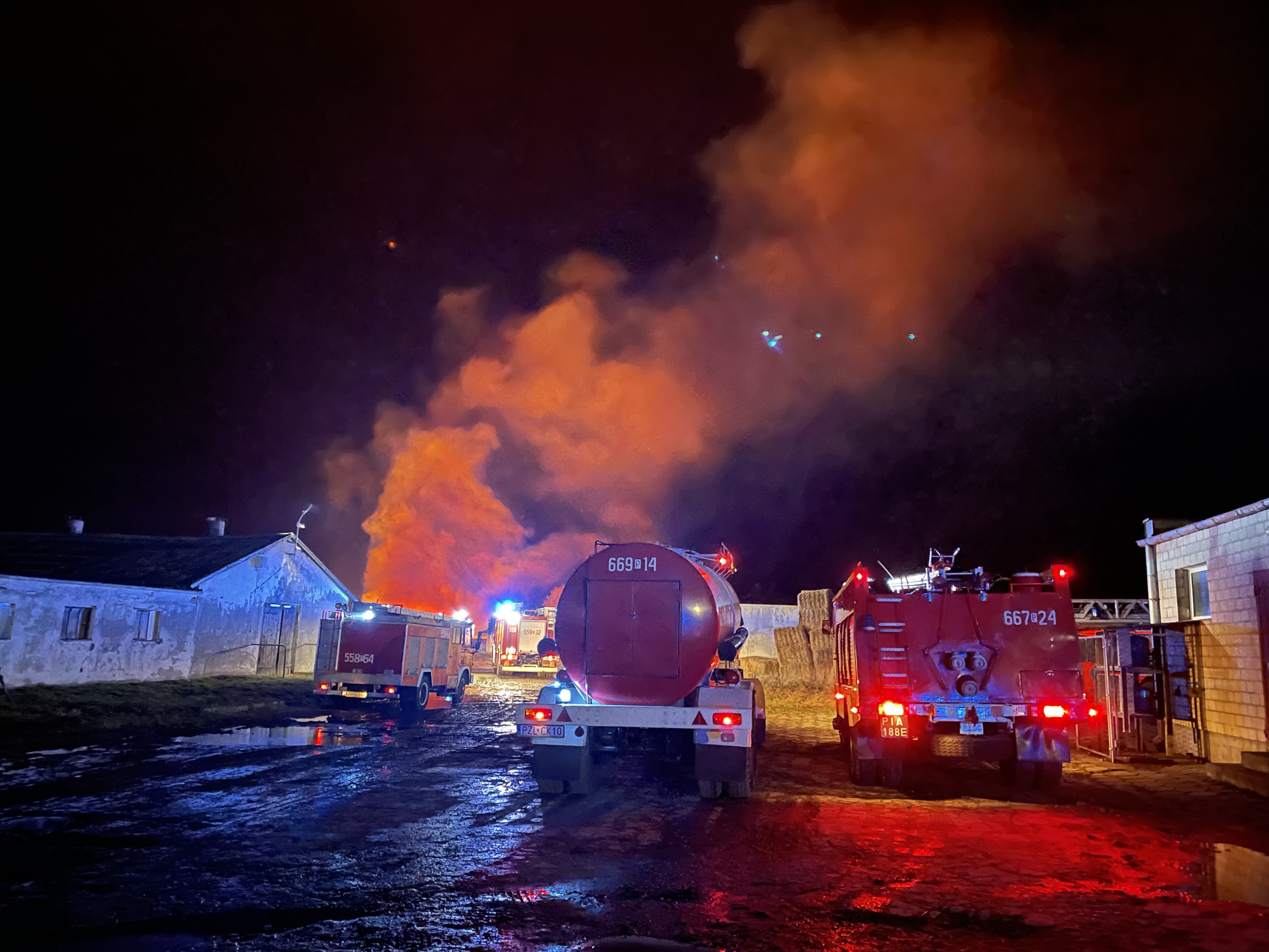 Po przybyciu na miejsce zdarzenia pierwszych zastępów straży pożarnej, stwierdzono, ze pożarem objęta jest w całości drewniana wolnostojąca stodoła, wypełniona słomą w balotach. Z uwagi na bardzo trudno warunki atmosferyczne – silny, porywisty wiatr przenoszący ogień, ale także porę nocną, bezpośrednio zagrożone były budynki gospodarsko-inwentarskie zlokalizowane w okolicy miejsca pożaru. W wyniku zdarzenia obiekt wraz ze słomą spłonął w całości. W działaniach udział brało łącznie 14 zastępów straży pożarnej, w tym strażacy z powiatu pilskiego oraz złotowskiego. Na miejscu zdarzenia działaniami dowodziła Grupa Operacyjna Komendanta Powiatowego Państwowej Straży Pożarnej w Pile. Przyczyny i okoliczności zdarzenia wyjaśnia Policja.