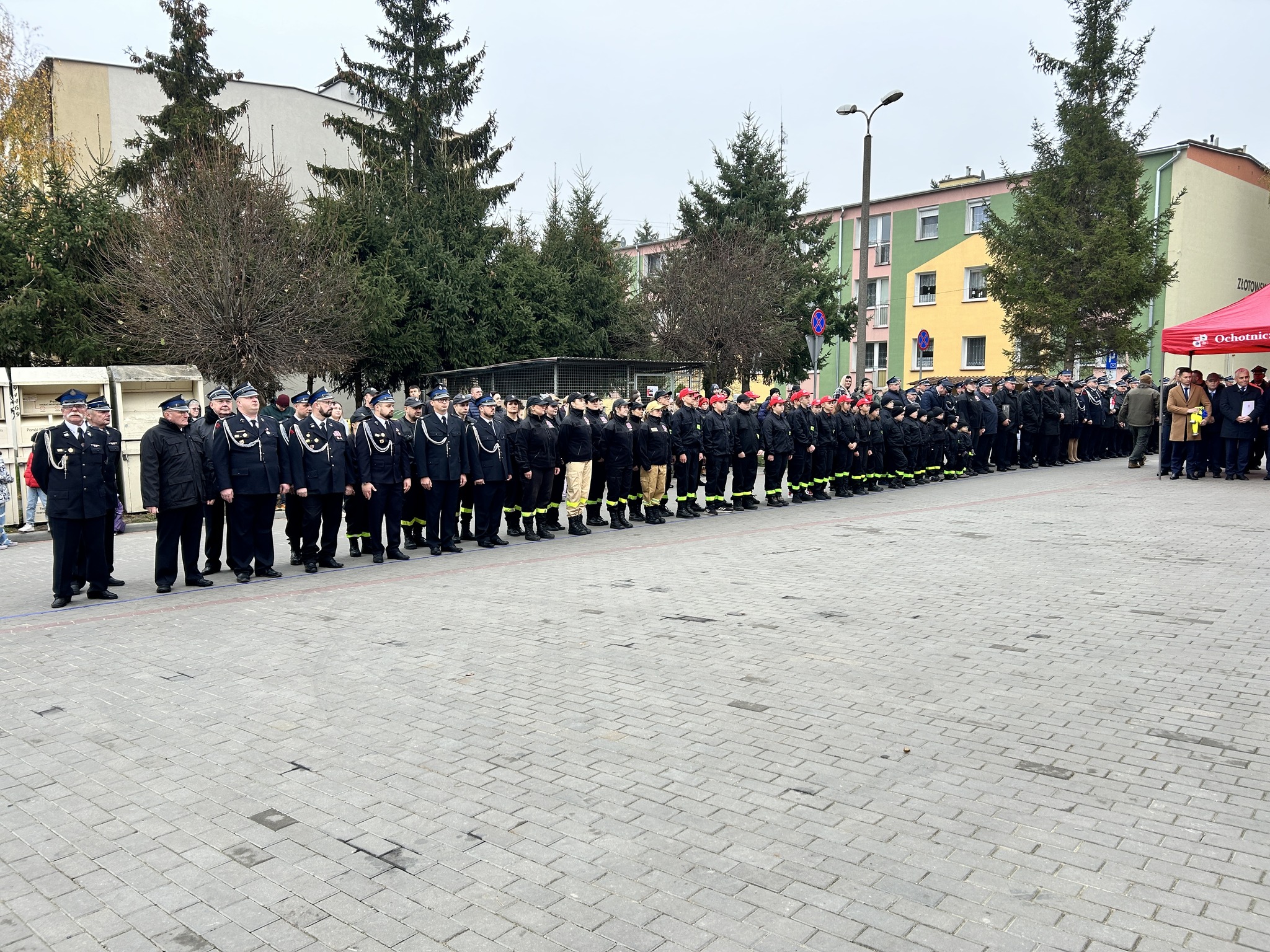 Uroczystość rozpoczęła się od złożeniu meldunku Panu Komendantowi Kamińskiemu, przez dowódcę uroczystości. Następnie po wprowadzeniu sztandaru Ochotniczej Straży Pożarnej w Łobżenicy, podniesiono flagę państwową i wspólnie odśpiewano Mazurka Dąbrowskiego.