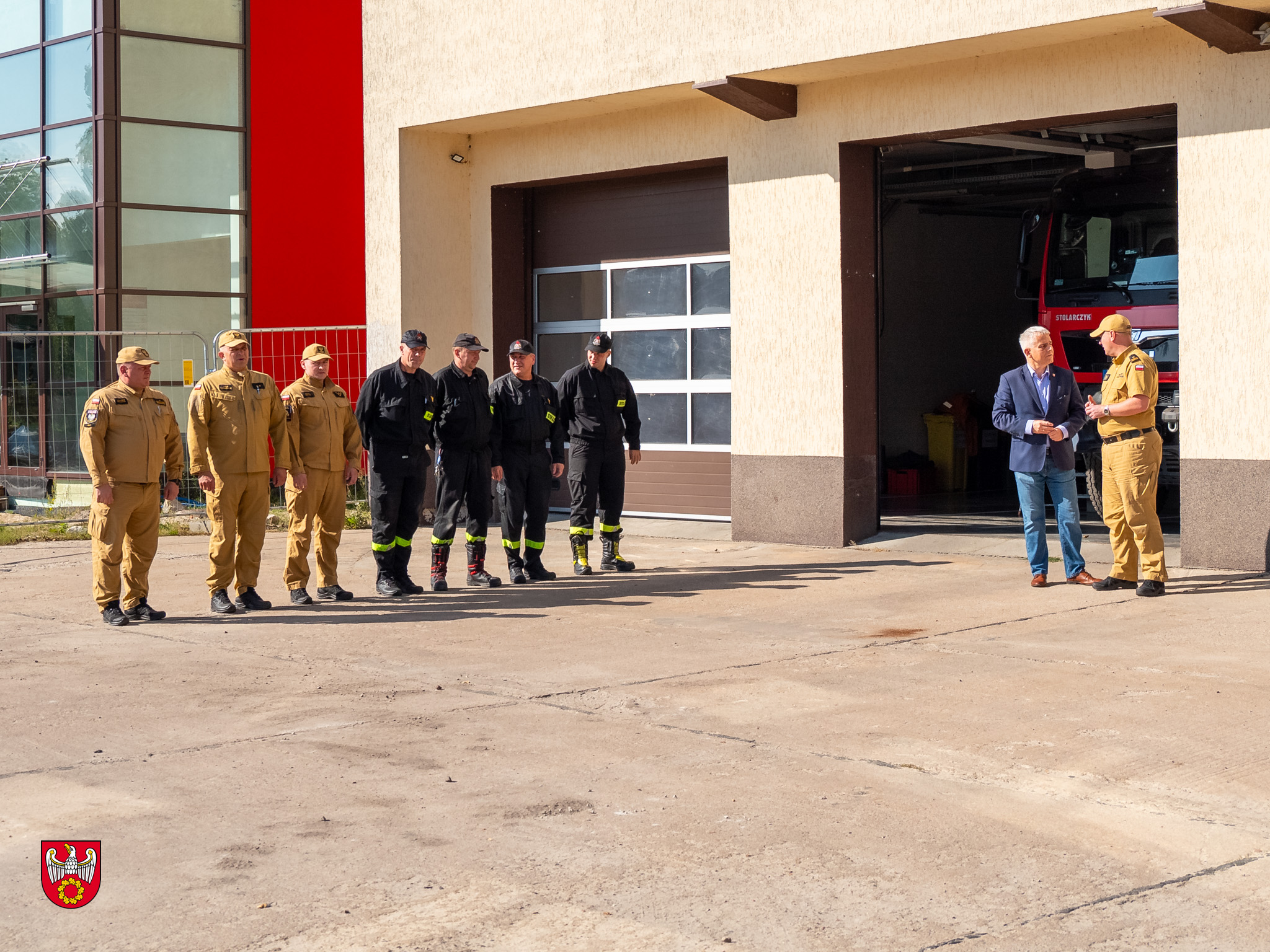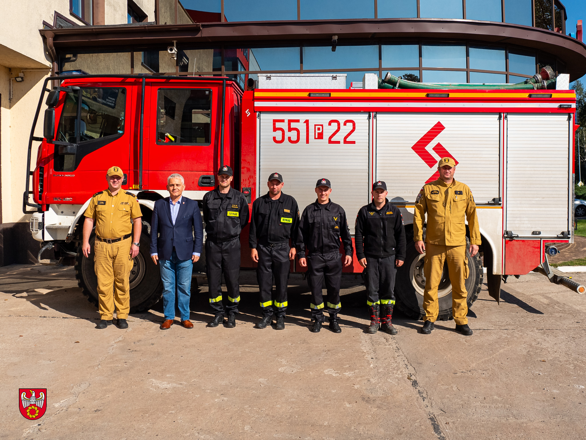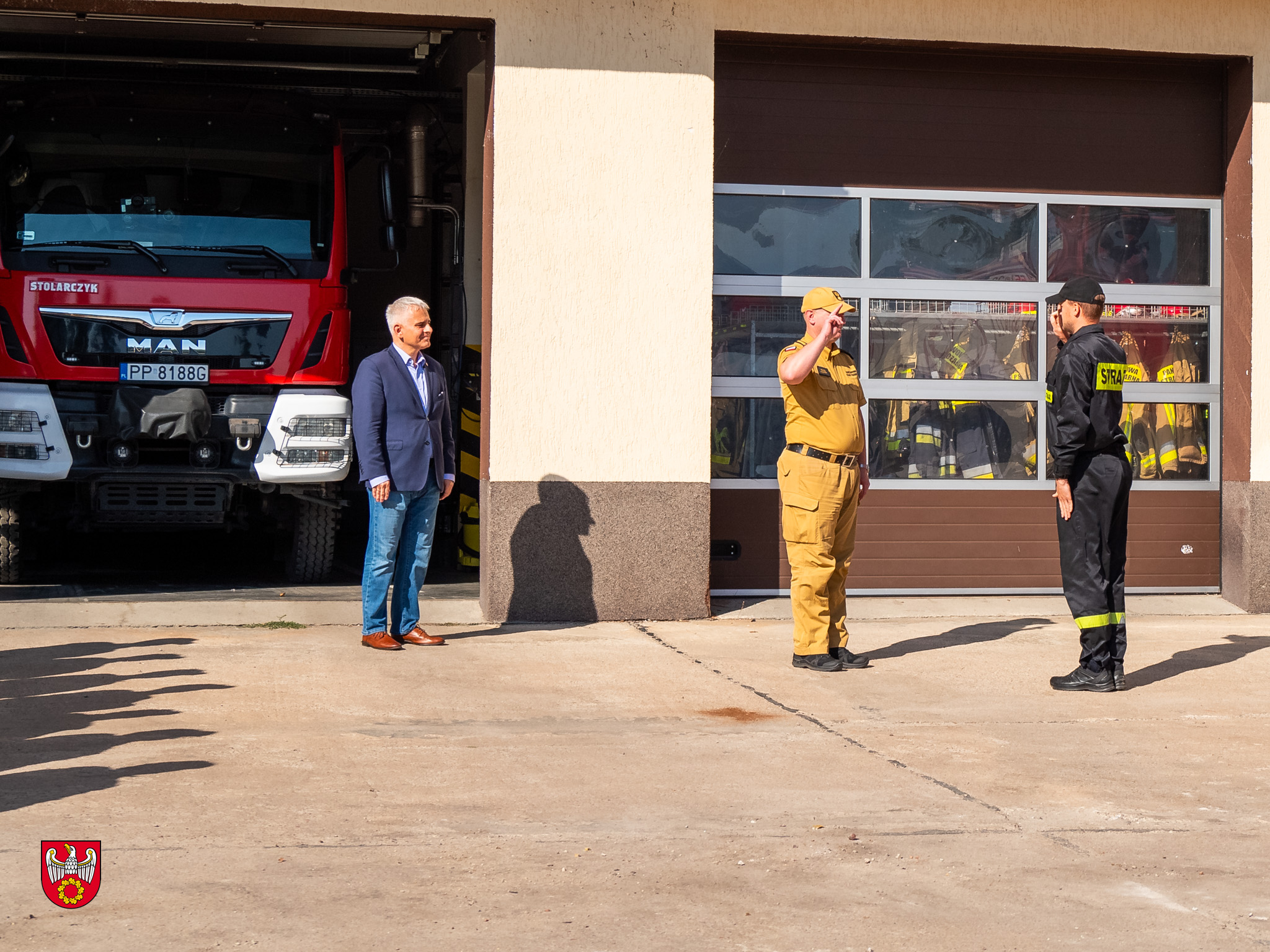 W macierzystej jednostce strażaków przywitał Starosta Pilski Rafał Zdzierela wraz z Komendantem Powiatowym Państwowej Straży Pożarnej w Pile, mł. bryg. Pawłem Kamińskim.