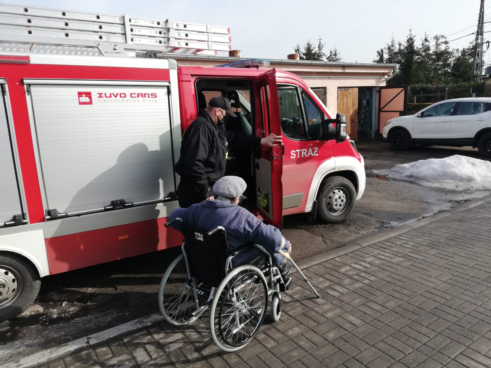 W ramach ogólnopolskiej akcji szczepień przeciw COVID-19 strażacy pomagają dotrzeć do punktów szczepień osobom, które nie mogą tam dojechać we własnym zakresie. Akcja jest prowadzona we współpracy z punktami szczepień oraz jednostkami samorządu terytorialnego.