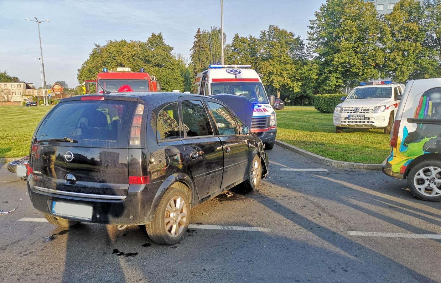 Na miejscu zdarzenia w ciągu kilku minut stawiły się służby ratownicze, które zabezpieczyły miejsce zdarzenia i udzieliły pierwszej pomocy poszkodowanemu motocykliście.
