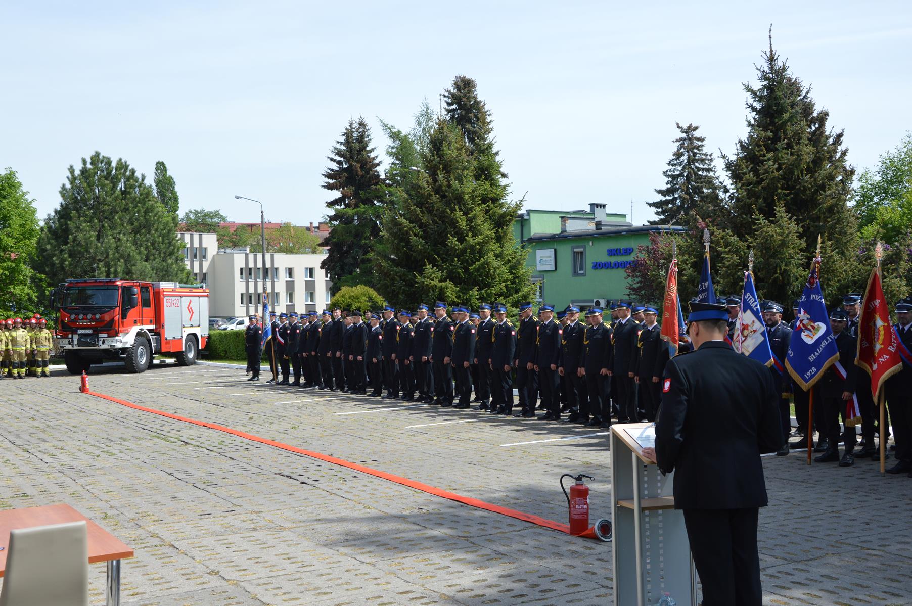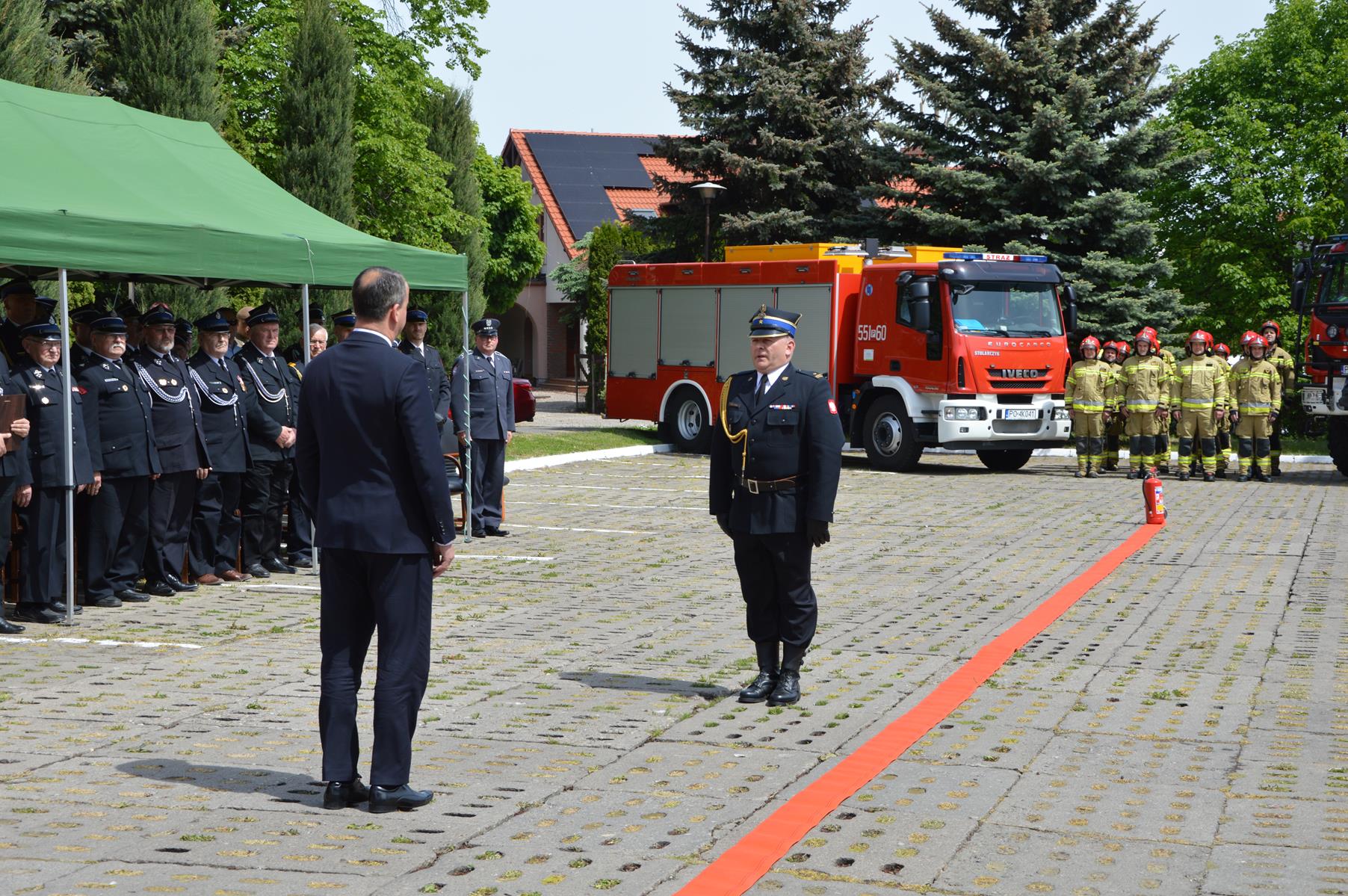 Uroczystość rozpoczęła się od złożenia meldunku Panu Michałowi Zielińskiemu, Wojewodzie Wielkopolskiemu przez dowódcę uroczystości mł. bryg. Grzegorza Orłowskiego.