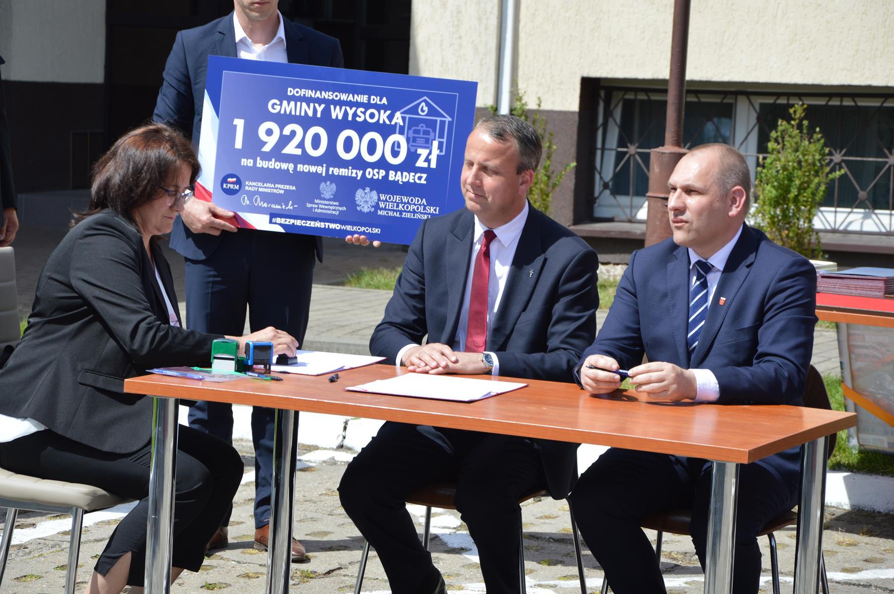 Niezmiernie miłym akcentem było podpisanie przez Pana Michała Zielińskiego Wojewodę Wielkopolskiego z Burmistrzem Miasta i Gminy Arturem Kłyszem, umowy na dofinansowanie inwestycji pn. „Budowa remizy strażackiej wraz z wyposażeniem dla OSP w Bądeczu”. Na ten cel z rezerwy budżetowej Prezes Rady Ministrów Mateusz Morawiecki przeznaczył 1,920 mln złotych. Warto wspomnieć, że wartość całej inwestycji przy udziale środków własnych gminy to koszt blisko 2,5 mln złotych.