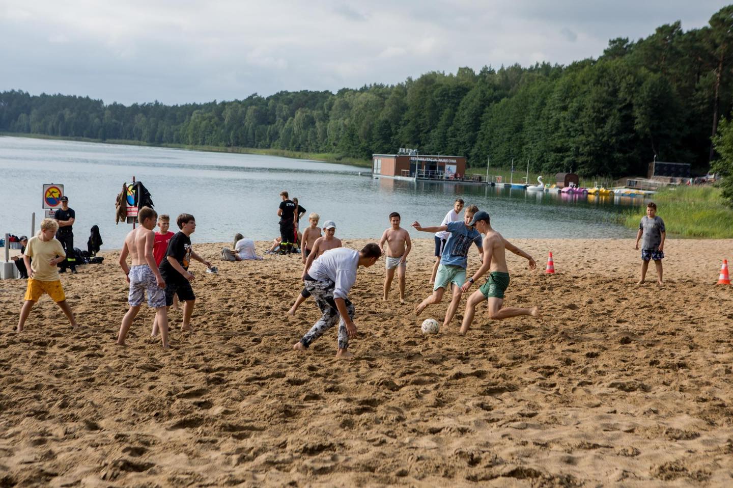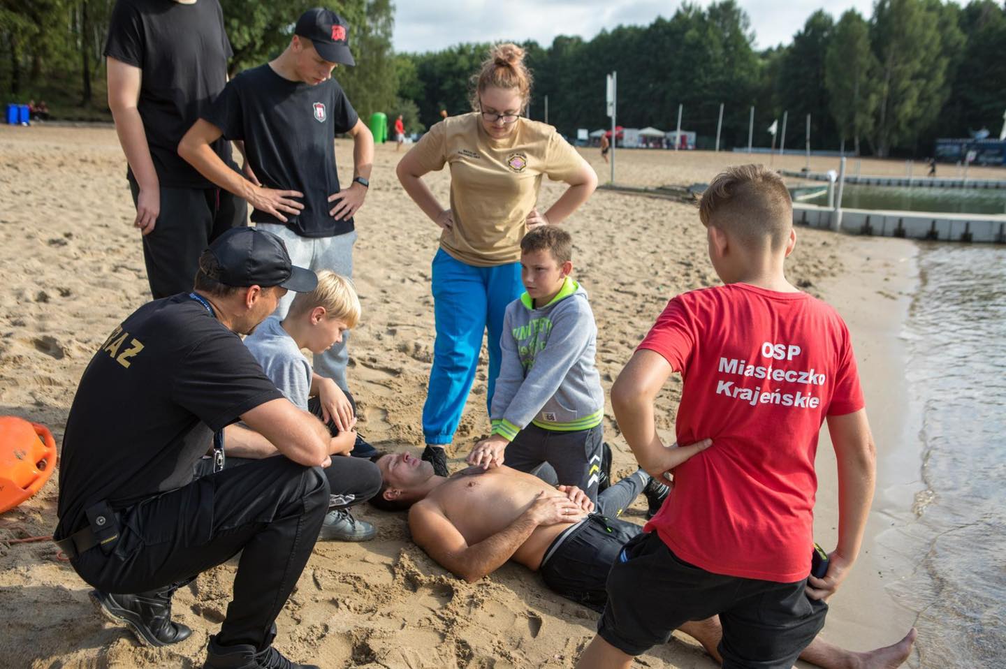 Kolejnym punktem dnia, były zajęcia z zakresu ratownictwa wodnego, zorganizowane wspólnie z Ochotniczą Strażą Pożarną Ratownictwo Wodne w Pile nad jeziorem Płotki. Nie zabrakło również gier zespołowych, rozwijających sprawność fizyczną.