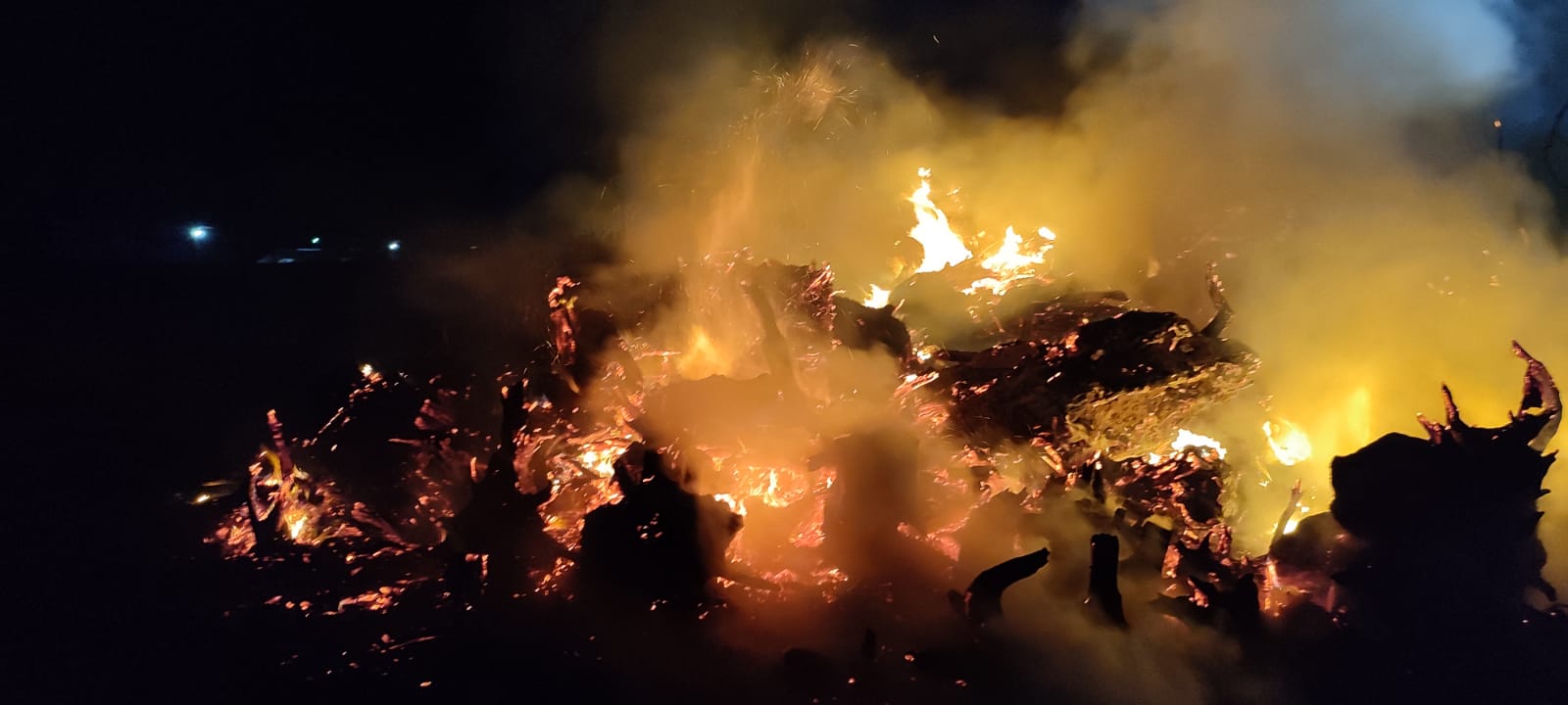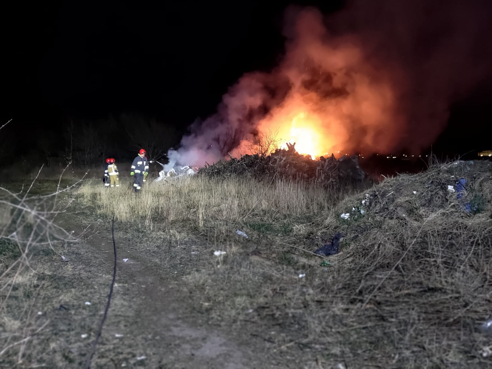 Natomiast jeszcze po godzinie 3:00 zastęp z JRG 2 Piła został zadysponowany do pożaru odpadów biodegradowalnych przy ul. Skrajnej w Pile. Z powodu konieczności dostarczenia dużej ilości wody do pożaru, zadysponowano na miejsce ciężki samochód ratowniczo-gaśniczy. Działania były utrudnione, gdyż paliły się korzenie, ściętych drzew, które utrzymywały przez długi czas wysoką temperaturę wewnątrz. Strażacy wrócili do strażnicy dopiero ok. godziny 9:00.