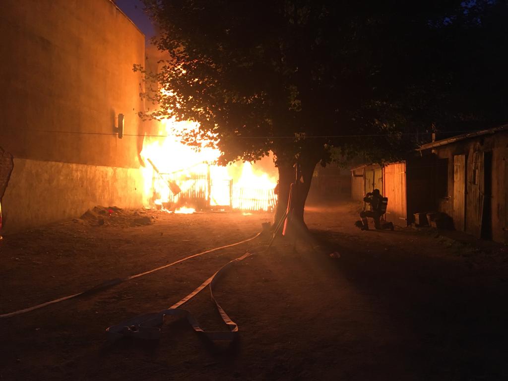 Z relacji zgłaszającego wynikało że w wyniku pożaru zagrożony jest sąsiedni budynek mieszkalny. Po prybyciu na miejsce zdarzenia pierwszych zastępów straży pożarnej, zastano pożar budynku gospodarczego (garażu) w pełni rozwinięty oraz zagrożony budynek mieszkalny. Natychmiast przystąpiono do akcji gaśniczej podając dwa prądy wody w natarciu i obronie.