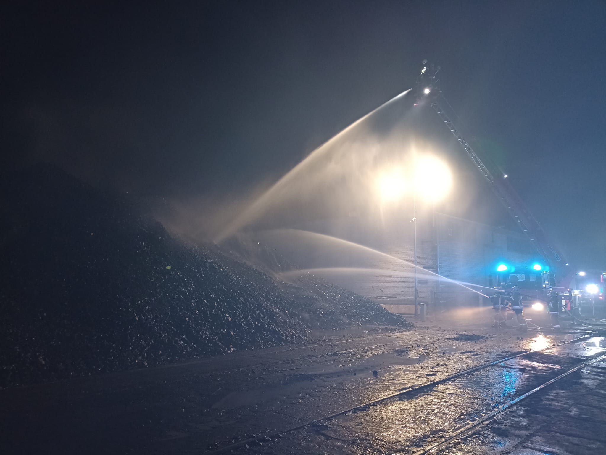 Po przybyciu na miejsce pierwszych zastępów straży pożarnej, stwierdzono że pożarem objęte jest około 1/3 hałdy węgla.