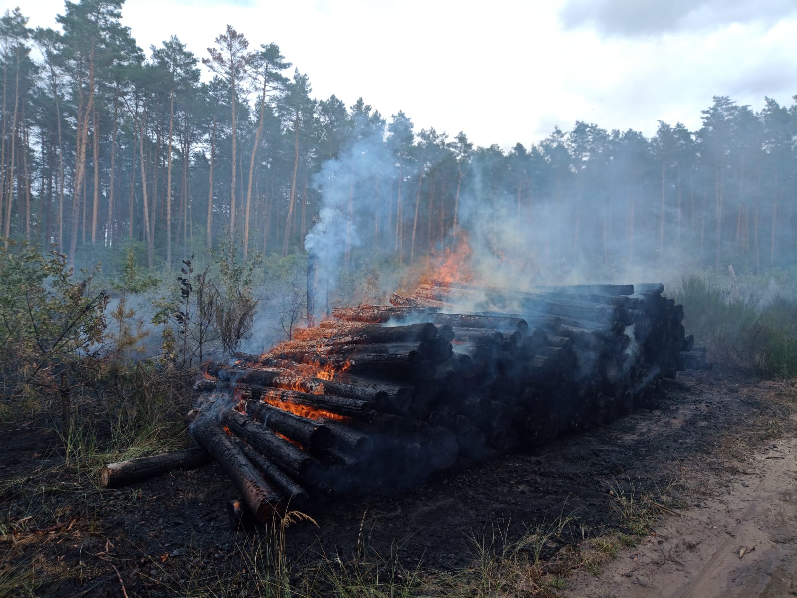 Po ugaszeniu młodnika KDR w porozumieniu z przedstawicielami Lasów Państwowych podjął decyzję o kontrolowanym wypaleniu pryzmy, której resztki rozgarnięto i przelano wodą. Po zakończeniu akcji gaśniczej miejsce pożaru zostało oborane przez ciągnik z pługiem.