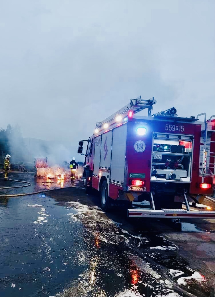 W trakcie rozpoznania okazało się, że pożarem objęte są ułożone piętrowo palety ze sprasowaną makulaturą, na terenie jednego z zakładów przy ulicy Długosza w Pile. Siły i środki na miejscu tego zdarzenia były niewystarczające, dodatkowo zadysponowane zostały dwa zastępy gaśnicze z OSP Szydłowo. W pierwszej fazie akcji strażacy przystąpili do natarcia na ognisko pożaru trzema prądami wody. Kolejny prąd wody podano w obronie na oddalone w niewielkiej odległości i będące w bezpośrednim zagrożeniu inne palety. W dalszej fazie działania polegały na rozgarnięciu, rozdrobnieniu przy pomocy koparko ładowarki i jednoczesnym dogaszaniem pozostałego materiału oraz dozorze pogorzeliska.