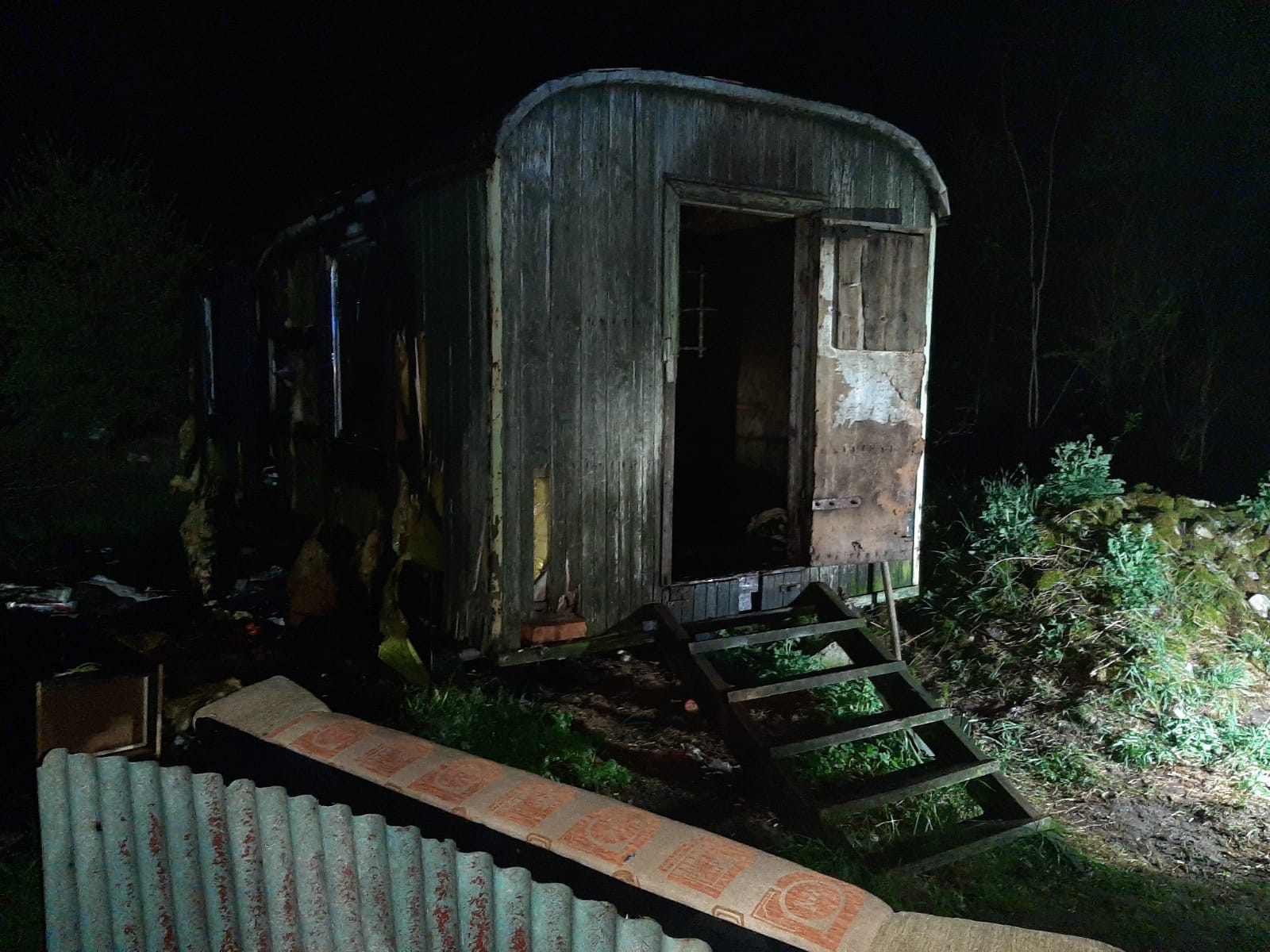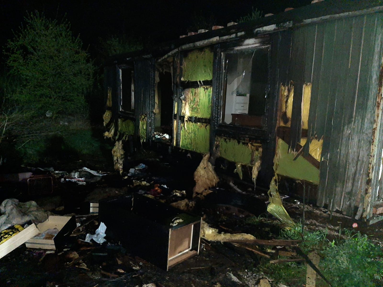 POŻAR ZAMIESZKAŁEGO BARAKOWOZU