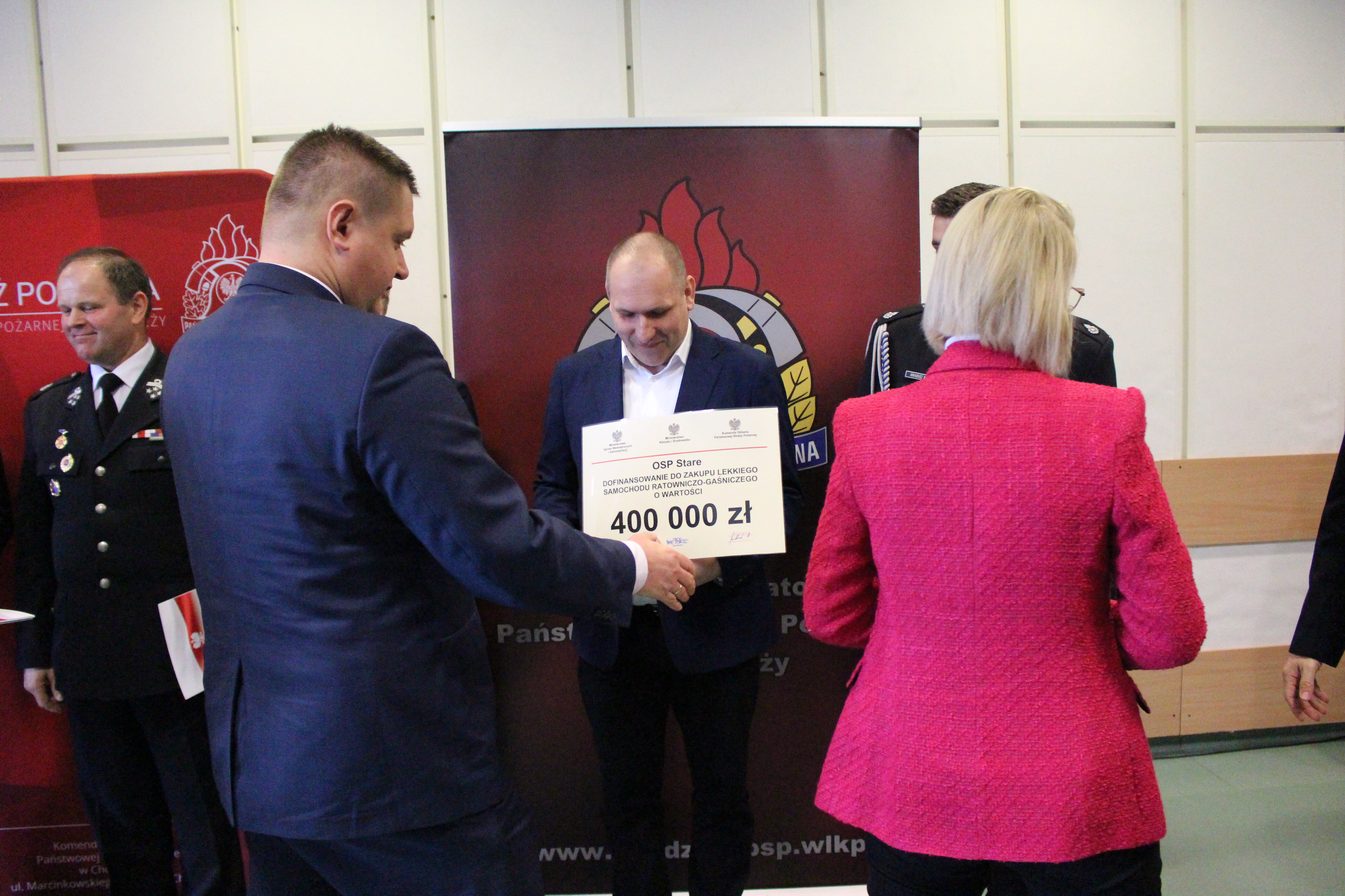 OSP Stare – lekki samochód ratowniczo gaśniczy, promesę odebrał Prezes Zarządu OSP Stare Arkadiusz Wiśniewski.