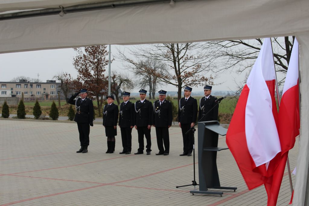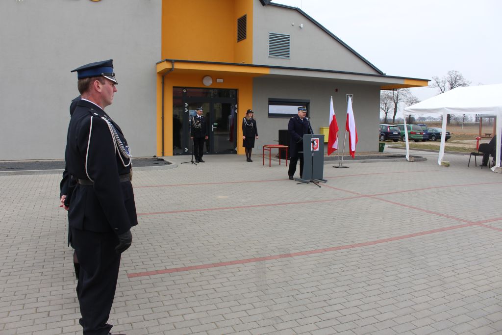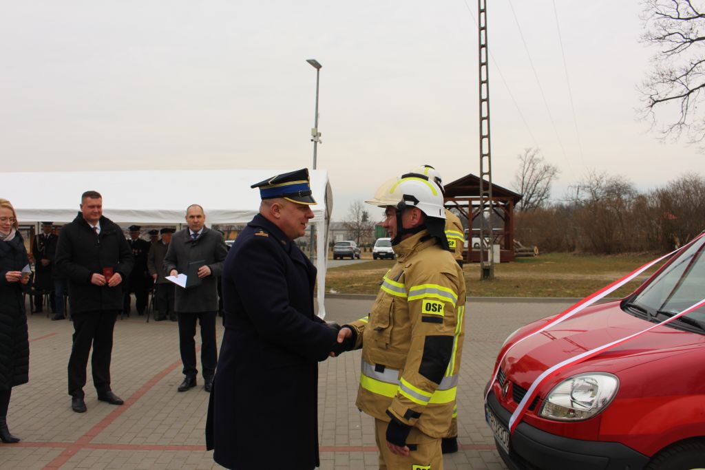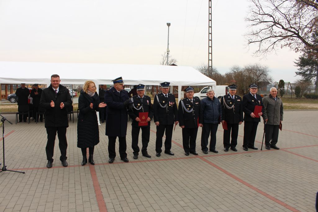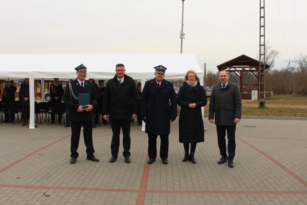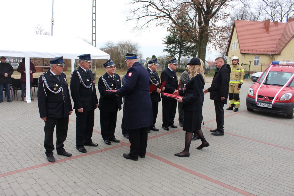 Podczas uroczystości głos zabrali zaproszeni goście, gratulując strażakom otrzymanego samochodu oraz przyznania decyzji administracyjnych i dziękując za codzienną służbę.