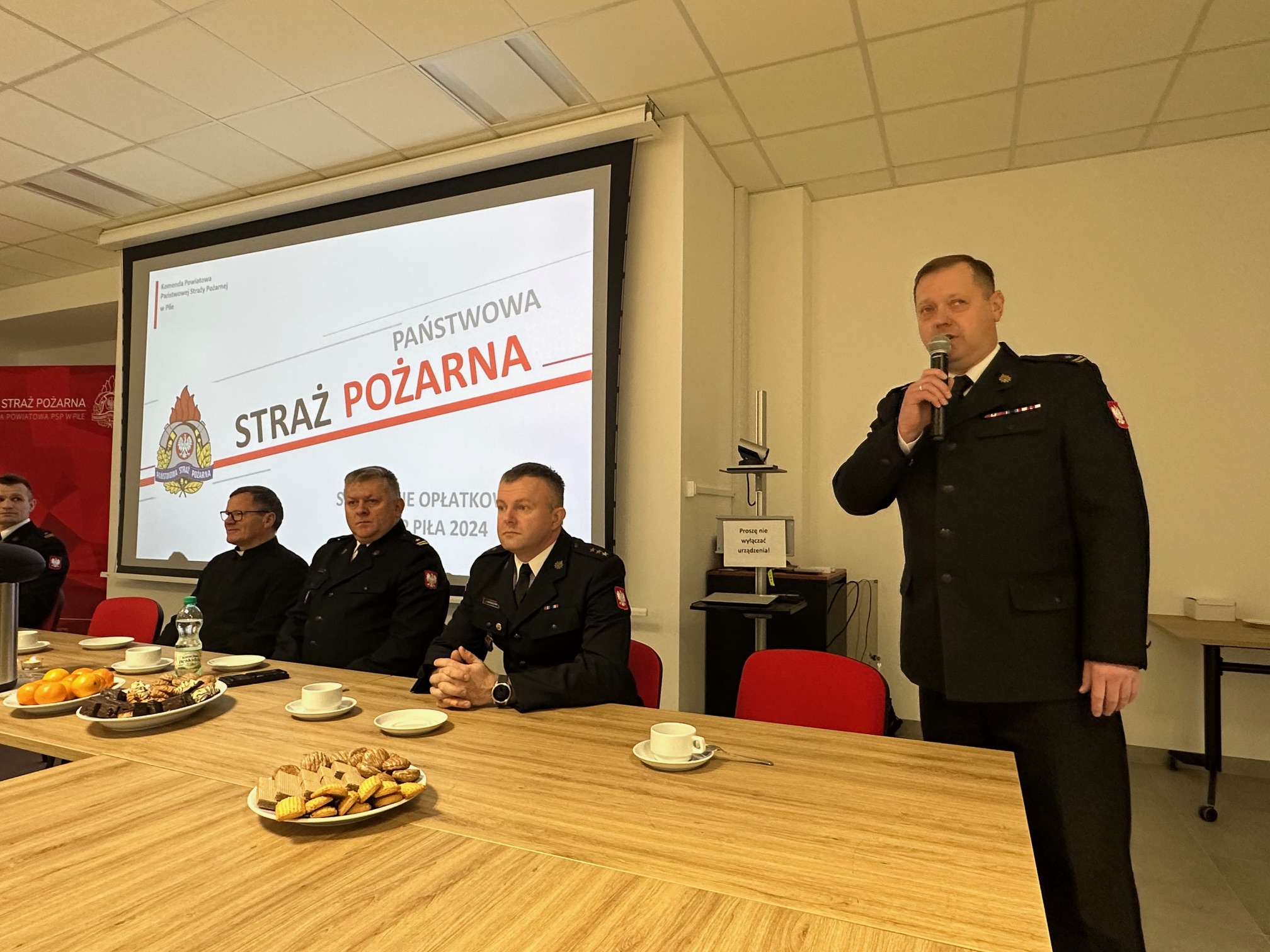 W piątek, 20 grudnia 2024 roku, w Komendzie Powiatowej Państwowej Straży Pożarnej w Pile odbyło się coroczne spotkanie opłatkowe, które stało się wyjątkową okazją do wspólnego świętowania, składania życzeń oraz refleksji nad mijającym rokiem.