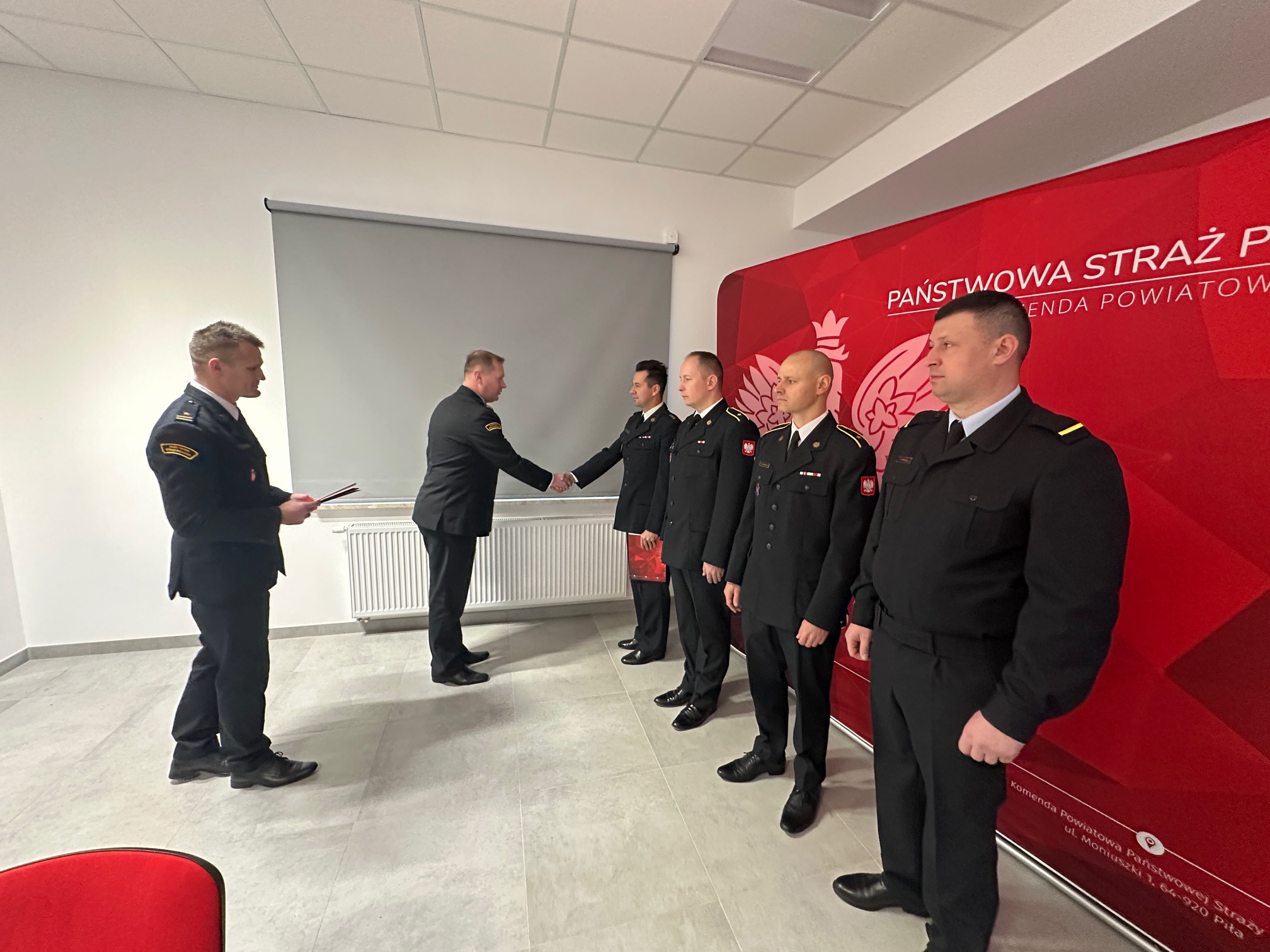 W trakcie spotkania Komendant Powiatowy PSP w Pile, mł. bryg. Paweł Kamiński, wraz z zastępcą mł. bryg. Michałem Warykaszem, wręczyli strażakom decyzje o mianowaniu z dniem 01 stycznia 2025 roku, na wyższe stanowiska służbowe. Awanse na niżej wymienione stanowiska otrzymali: