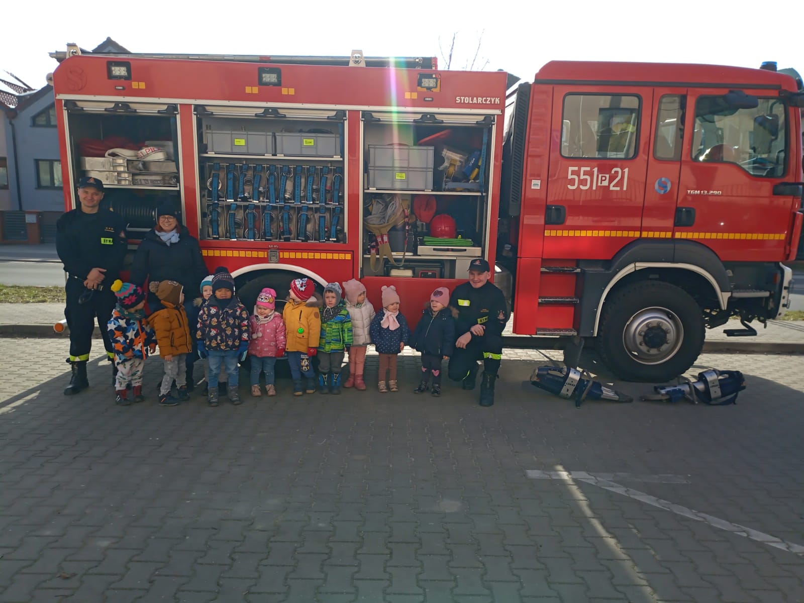 Z uwagi na okres zimowy omówiono również zagrożenia wynikające z korzystania z zamarzniętych zbiorników wodnych. Podczas wizyty dzieci miały okazję zobaczyć sprzęt pożarniczy.