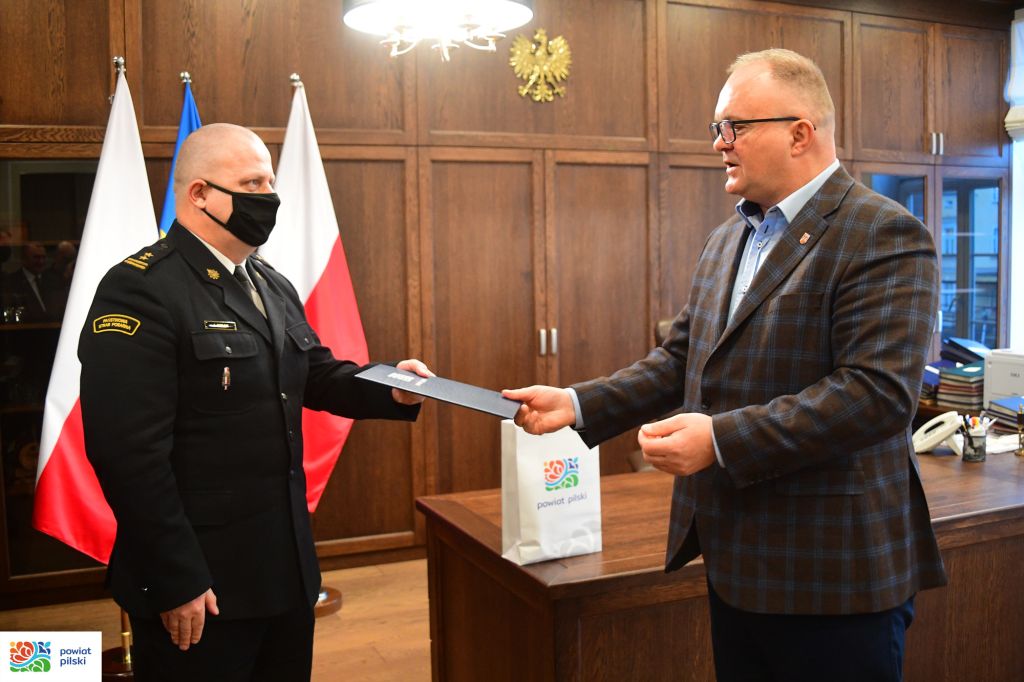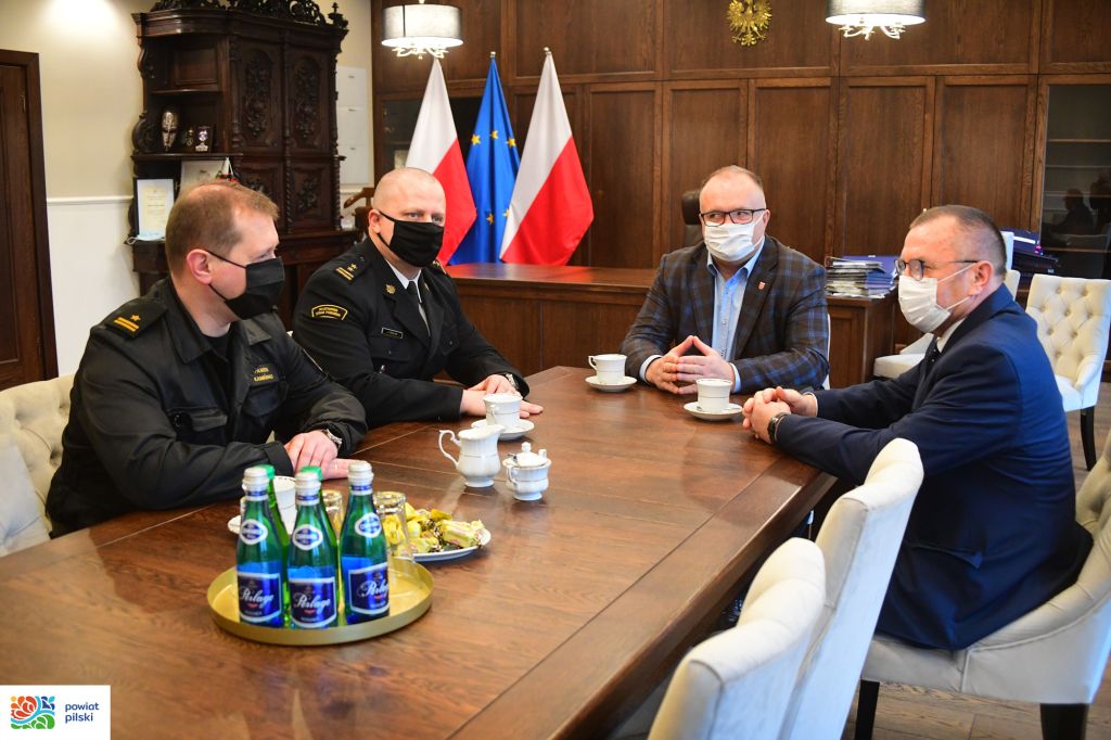 27 stycznia 2022 roku, czyli w pierwszy dzień pełnienia obowiązków służbowych Komendanta Powiatowego Państwowej Straży Pożarnej w Pile przez bryg. Jarosława Kołaka, odbyło się spotkanie ze starostą powiatu pilskiego Eligiuszem Komarowskim i przewodniczącym Rady Powiatu Kazimierzem Wasiakiem.