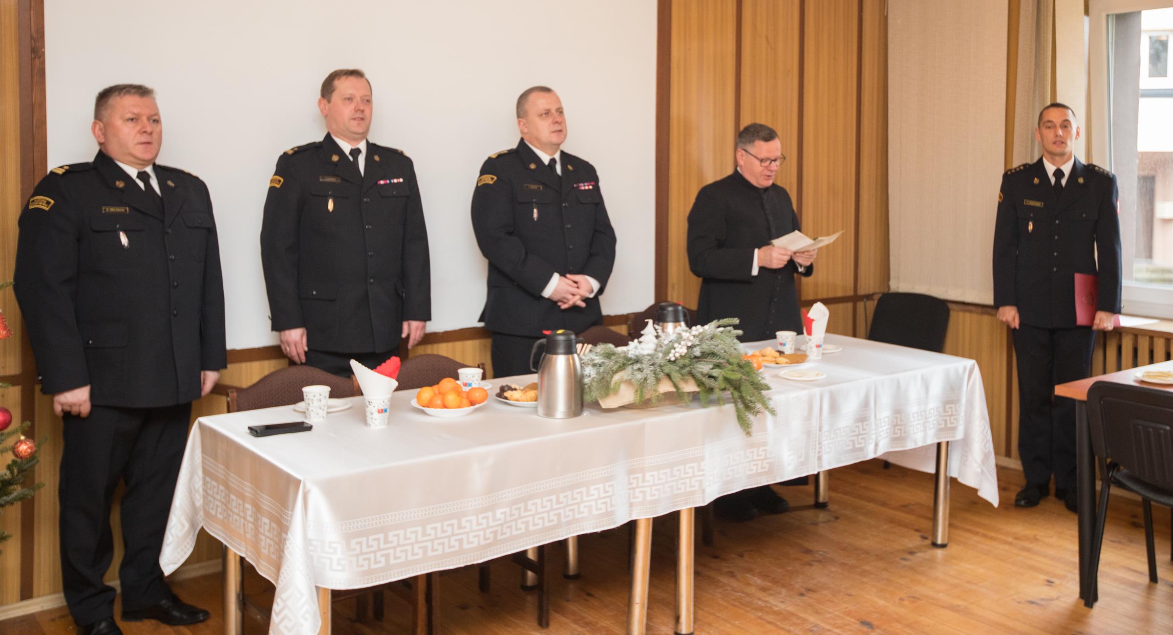 W samo południe w świetlicy komendy odbyło się spotkanie opłatkowe dla wszystkich funkcjonariuszy i pracowników cywilnych. Oprawę duchową zapewnił ks. Krzysztof Kowal – kapelan pilskich służb mundurowych. W tej podniosłej atmosferze wszyscy zebrani podzieli się opłatkiem składając sobie życzenia świąteczno-noworoczne.