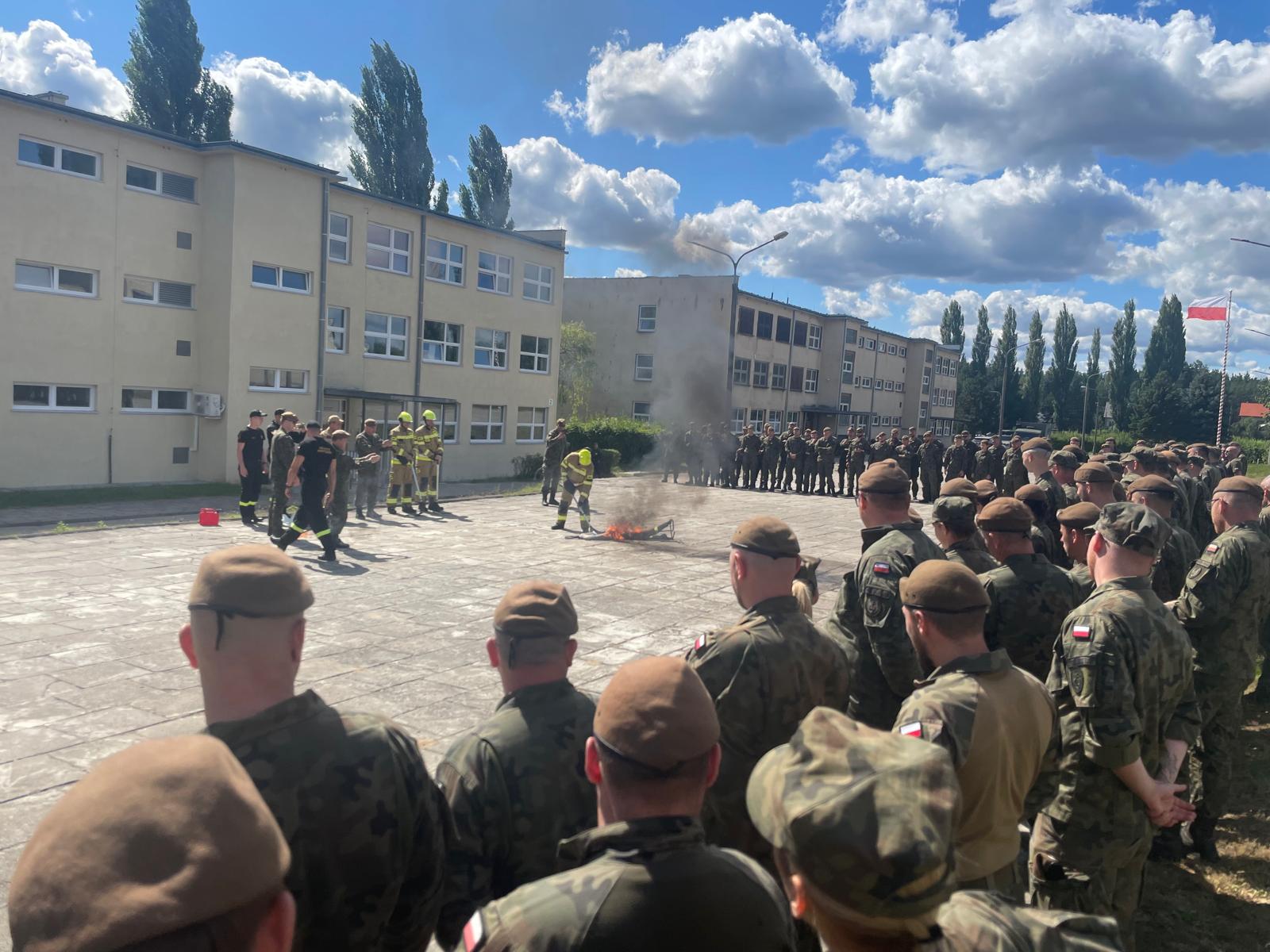 Zajęcia podzielone zostały na część teoretyczną, gdzie WOT- owcy poznali rodzaje oparzeń, zagrożenia wynikające z takich sytuacji oraz metody skutecznego udzielenia pomocy osobie poszkodowanej. W części praktycznej przećwiczono elementy ugaszenia pożaru na manekinie przy pomocy dostępnego, podręcznego sprzętu gaśniczego: tłumice, koc gaśniczy, gaśnica proszkowa.