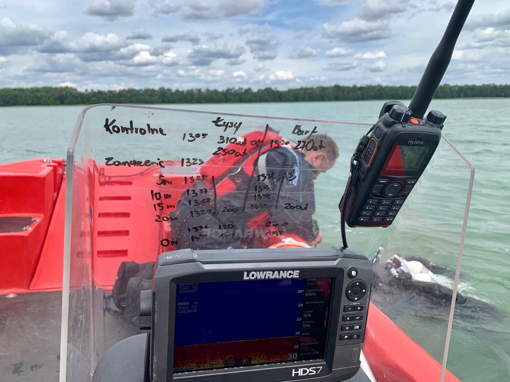 Przeprowadzono również nurkowanie głębokie w ramach posiadanych kwalifikacji w przedziale 20 m dla mł. nurków MSWiA oraz 30 m dla nurków MSWiA.