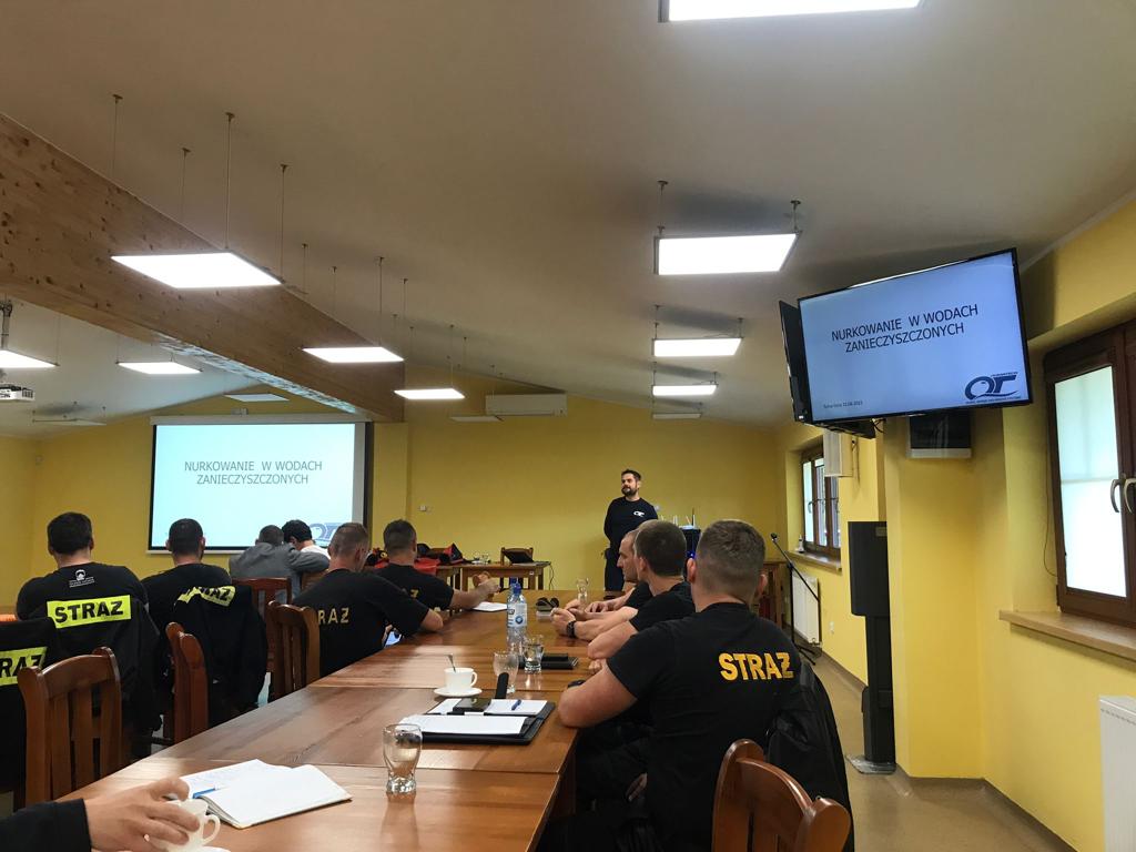 Podczas zajęć teoretycznych omówiono metody wydobywania i stropowania zatopionych obiektów, nurkowanie w wodach zanieczyszczonych, użycie podwodnych platform do transportu osób poszkodowanych.
