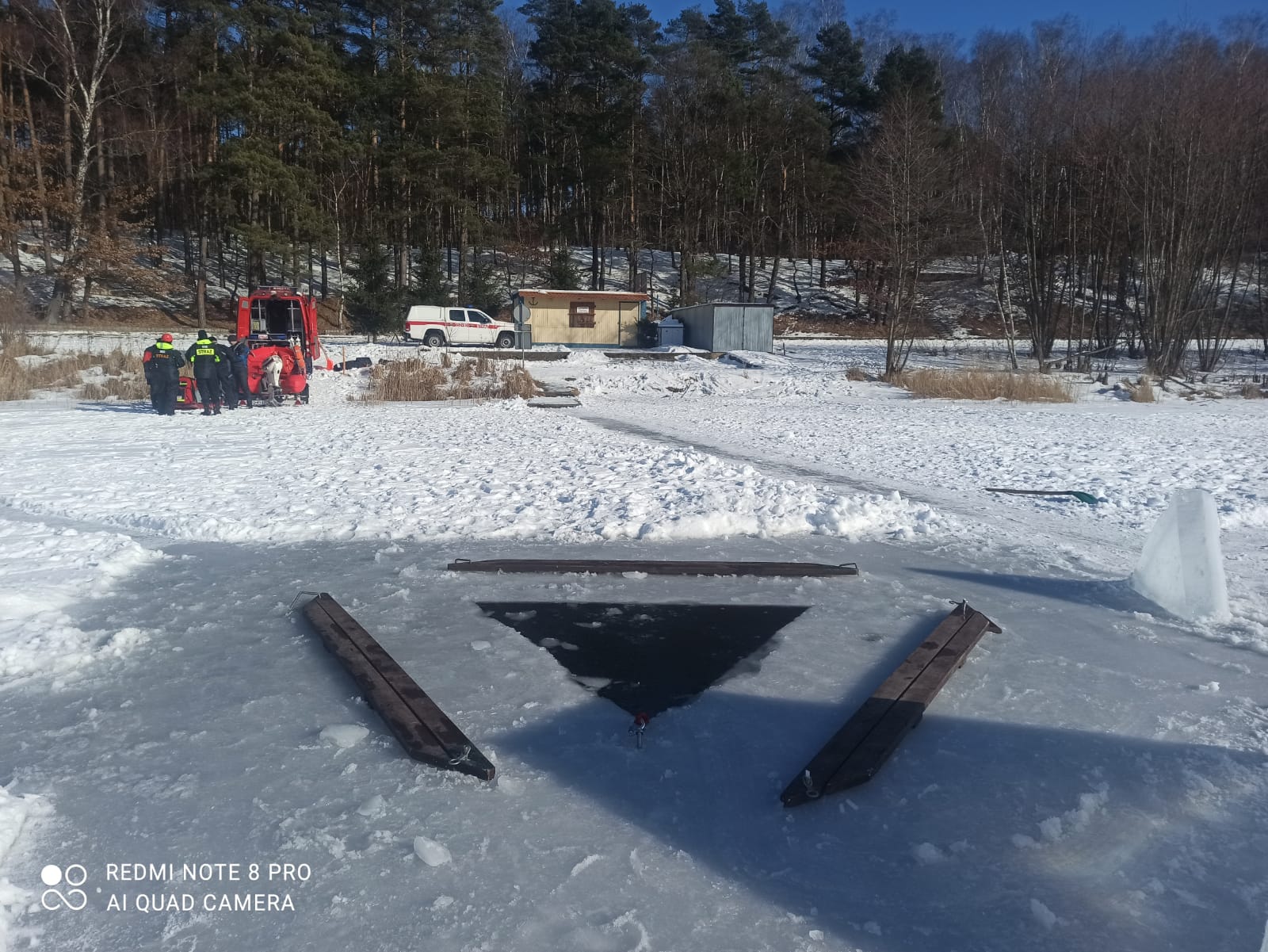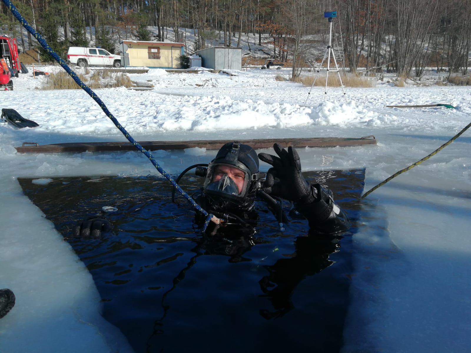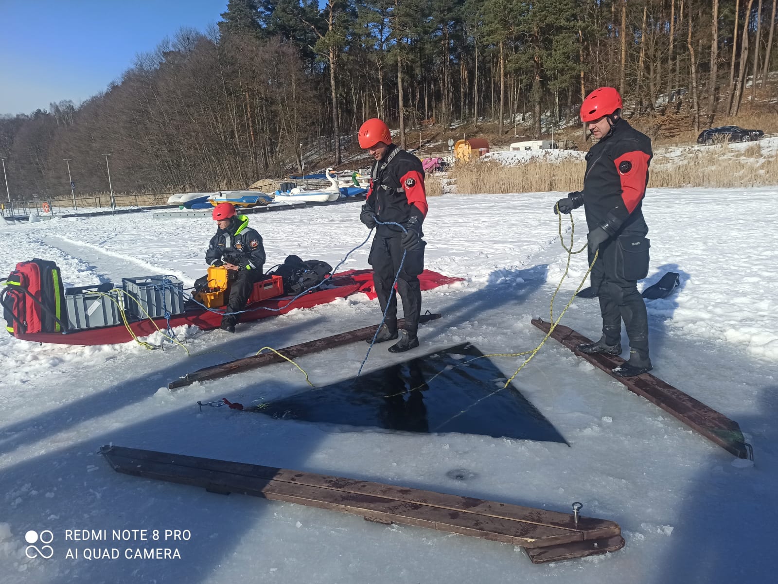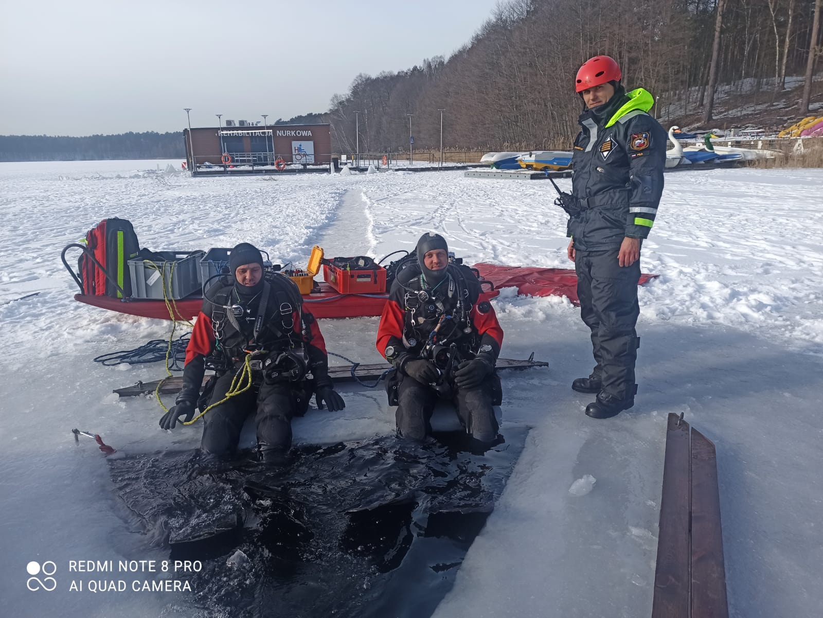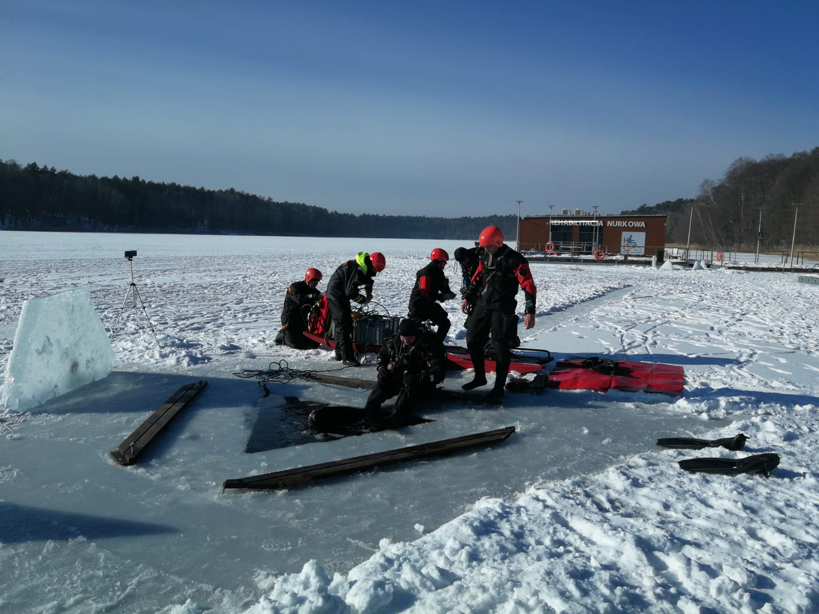 W związku z okresem zimowym i niskimi temperaturami przeprowadzono szkolenie z nurkowania w przestrzeniach zamkniętych, a dokładnie pod lodem. Po części teoretycznej a także instruktażu BHP, które przeprowadził instruktor MSWiA mł. ogn. Marcin Manthey strażacy przećwiczyli wycinanie przerębla, techniki zabezpieczenia i asekuracji nurka znajdującego się pod lodem, metody autoasekuracji w przypadku zagubienia się pod wodą w celu odnalezienia drogi ewakuacyjnej do wyjścia oraz sposoby wydobycia osób z wody na śliską taflę lodu. Szkolenie na zamarzniętym akwenie miało na celu podniesienie kwalifikacji płetwonurków w zakresie nurkowania pod lodem i usprawnić ich działania w niskich temperaturach, które stwarzają zagrożenie dla ludzi oraz zwierząt.