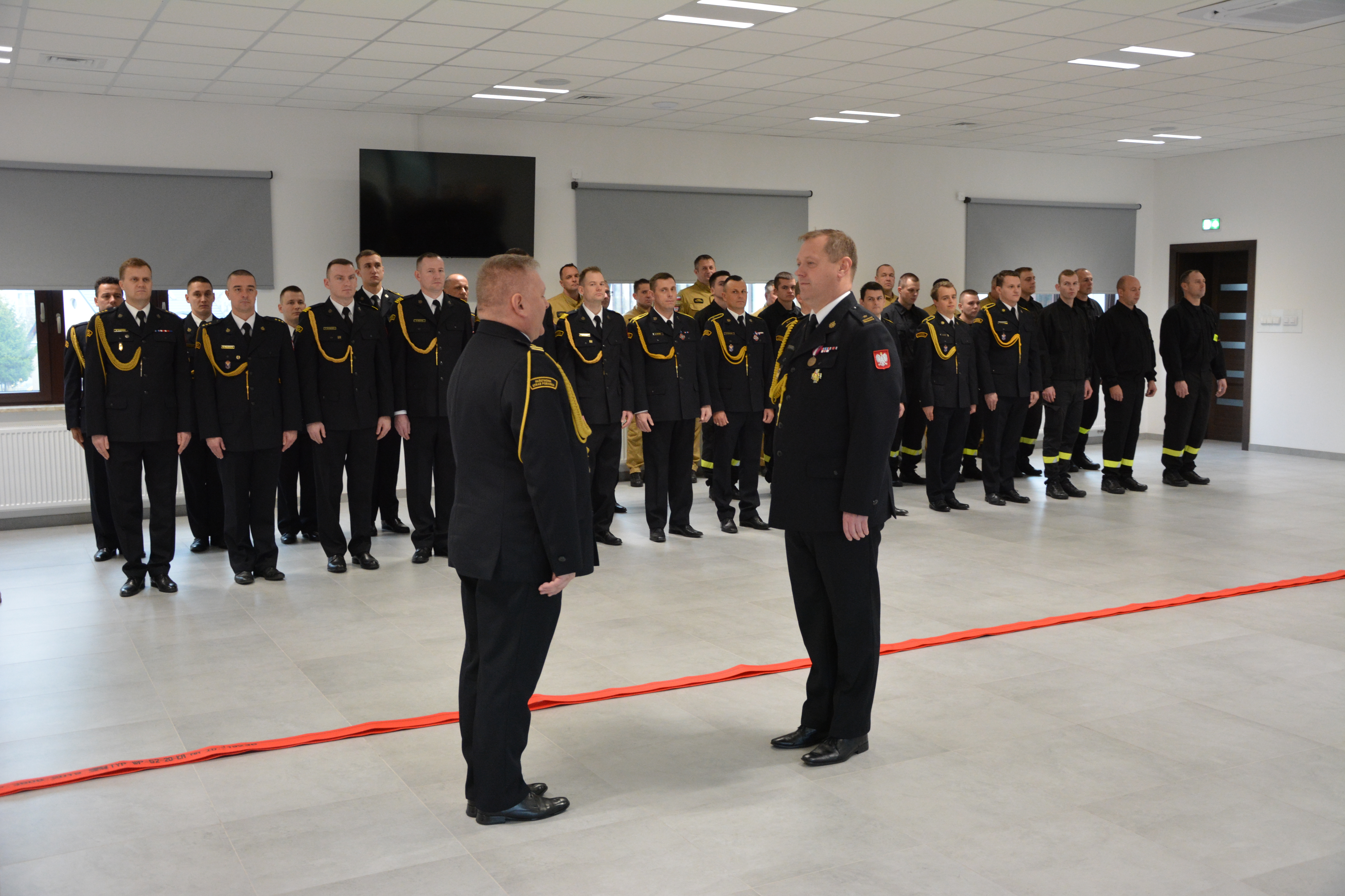 Następnie Komendant Powiatowy PSP w Pile mł. bryg. Paweł Kamiński w asyście Zastępcy Komendanta Powiatowego PSP w Pile mł. bryg. Michała Warykasza wręczyli awanse na wyższe stopnie służbowe oraz mianowania na wyższe stanowiska służbowe funkcjonariuszom tutejszej komendy.