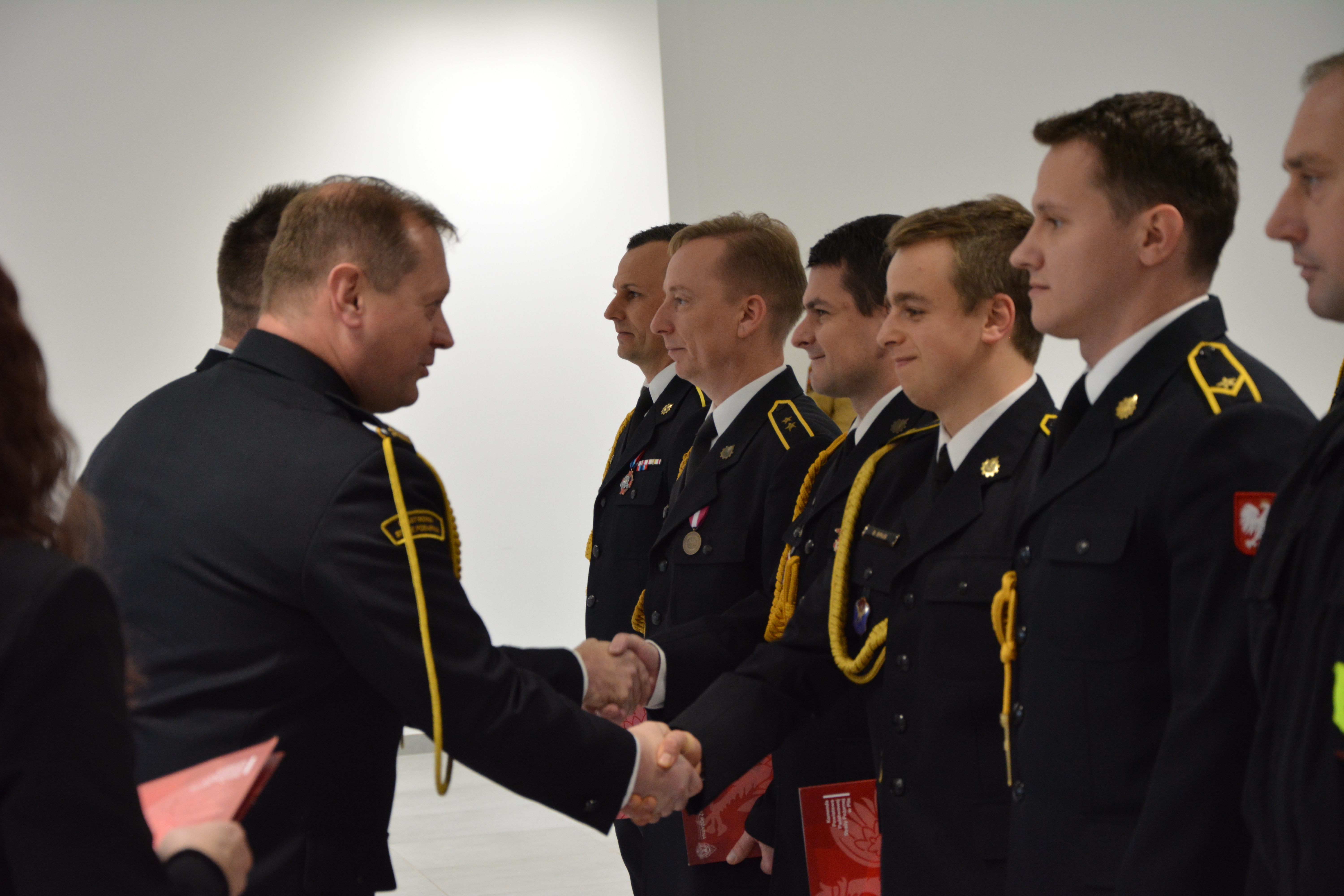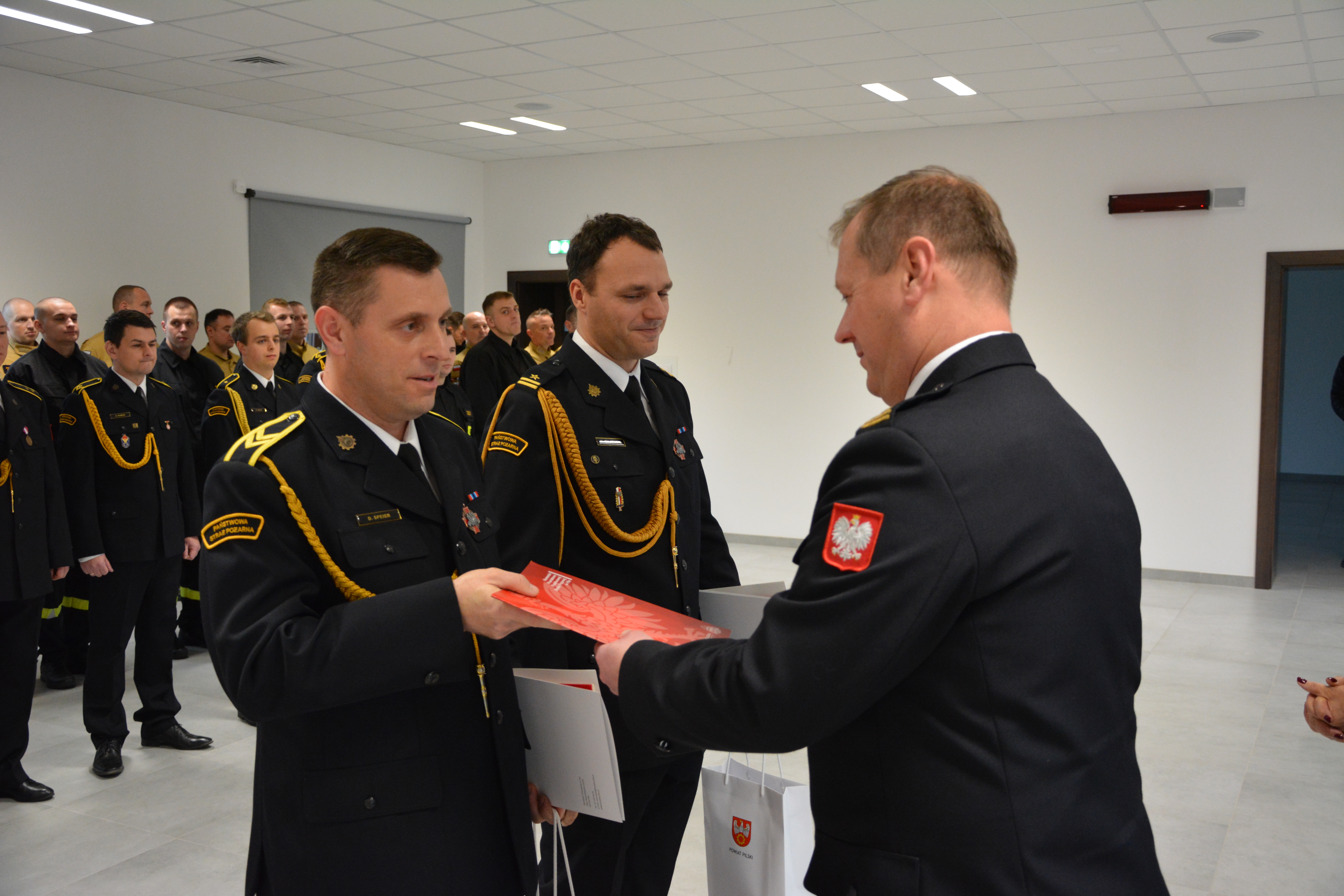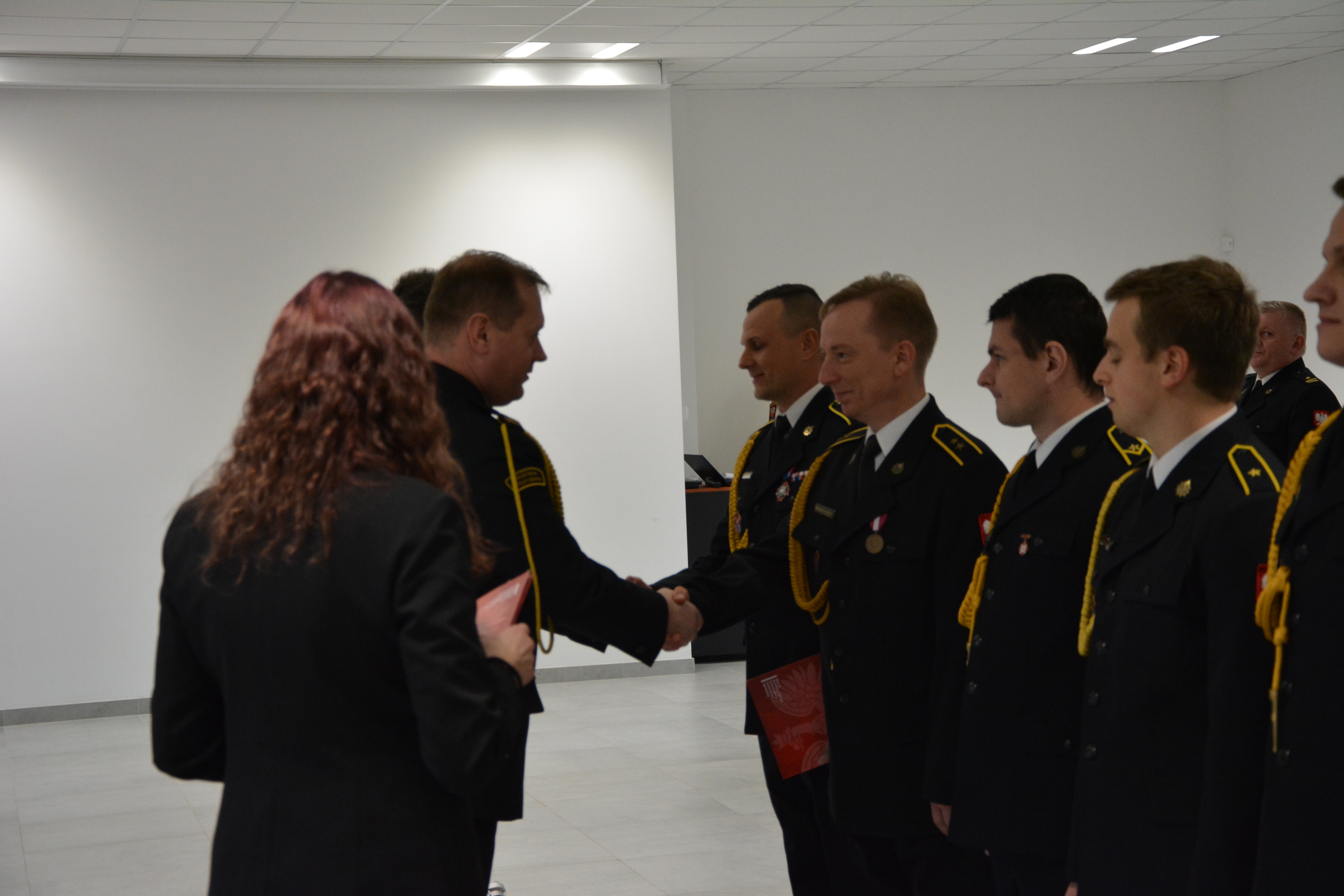 Podczas uroczystości szczególne wyróżnienia otrzymało dwóch funkcjonariuszy KP PSP w Pile: st. ogn Dawid Speier oraz ogn. Karol Subdarzewski, którzy w dniu 27 października 2025 roku, wykazali się wzorową postawą poza służbą. Z rąk pani Poseł na Sejm Rzeczypospolitej Polskiej - Przewodniczącej Sejmowej Komisji Administracji i Spraw Wewnętrznych Marii Janyski, Starosty Pilskiego pana Rafała Zdziereli oraz Komendanta Powiatowego PSP w Pile odebrali podziękowania za bohaterską akcję ratunkową, podczas której uratowali osobę poszkodowaną z płonącego pojazdu.