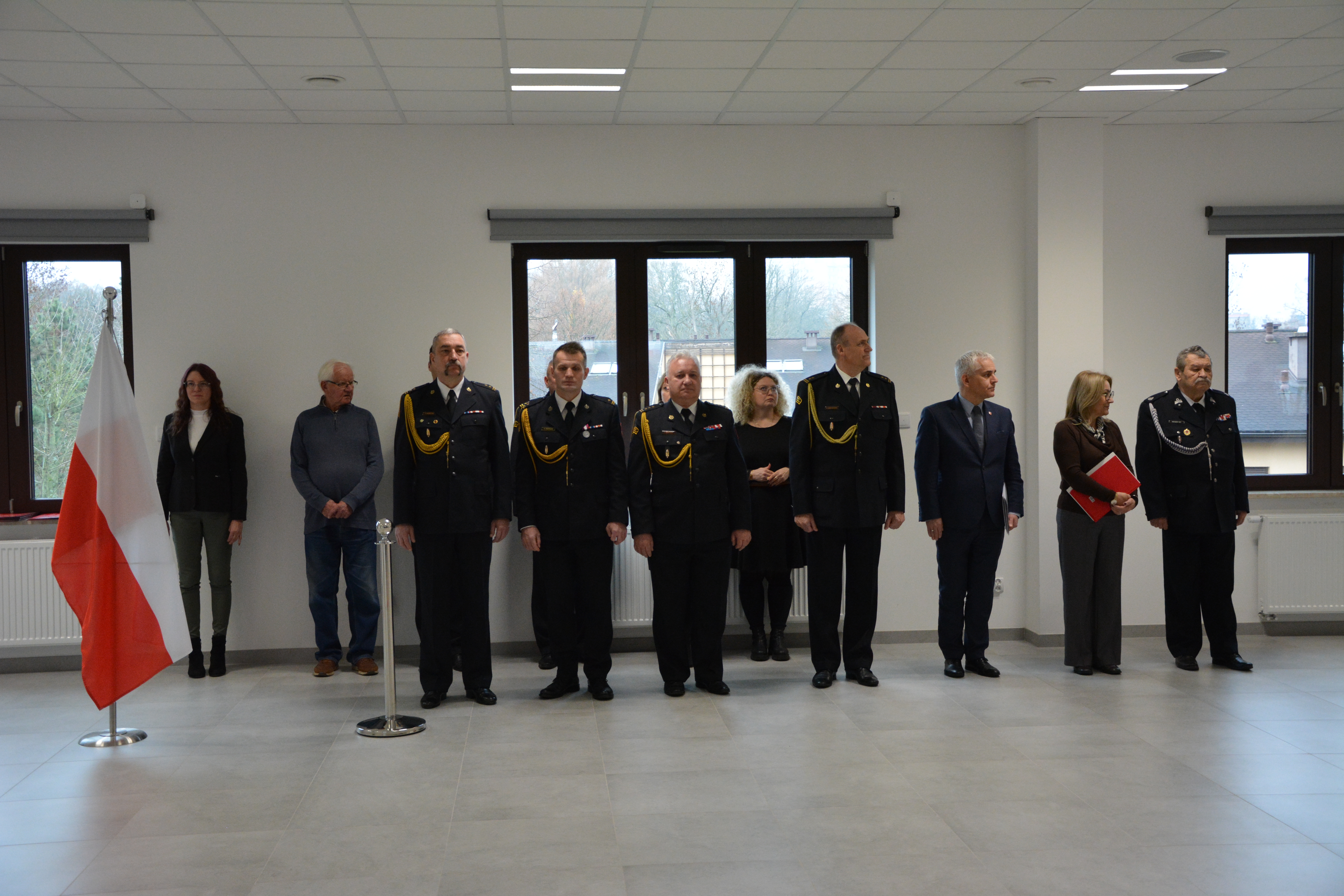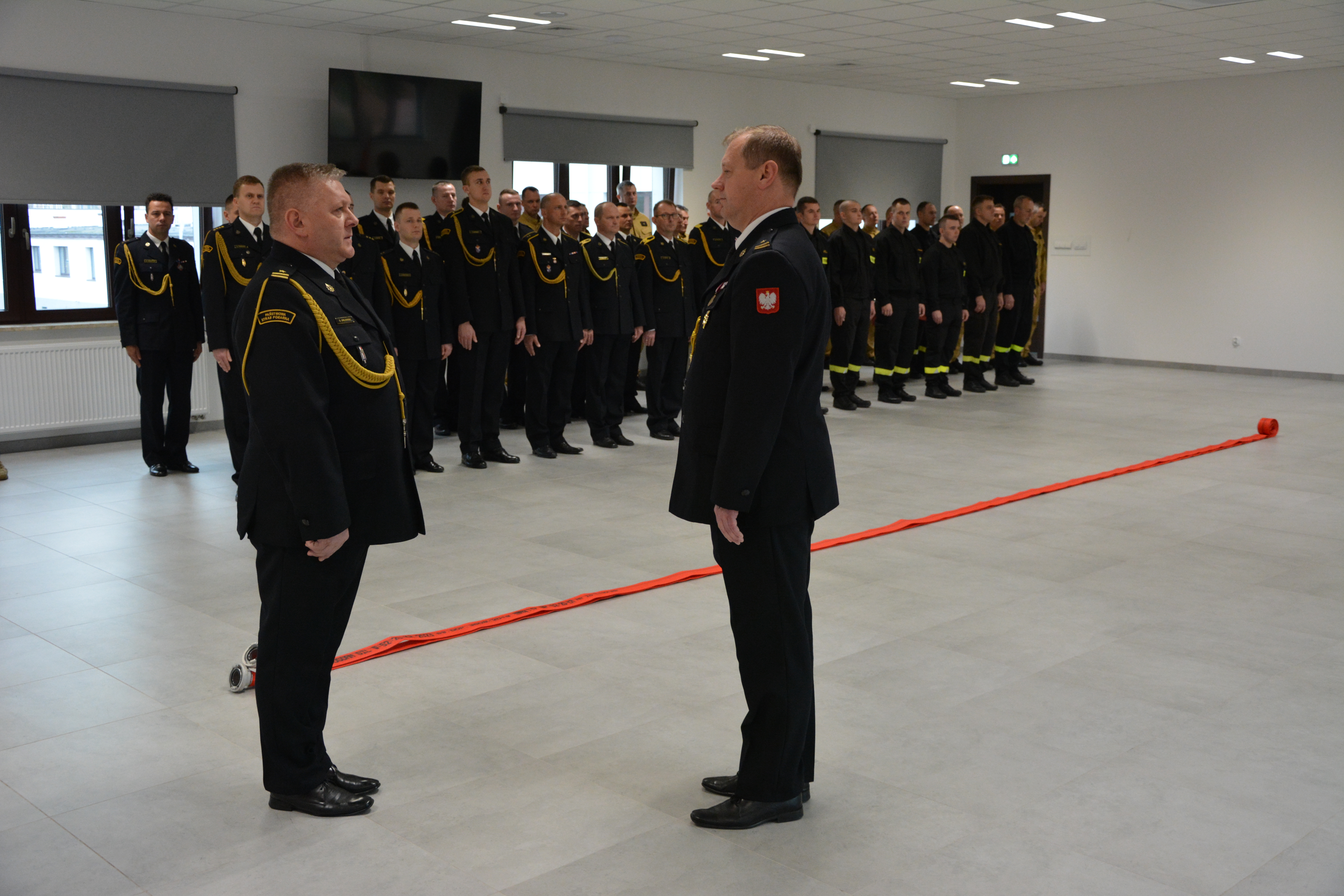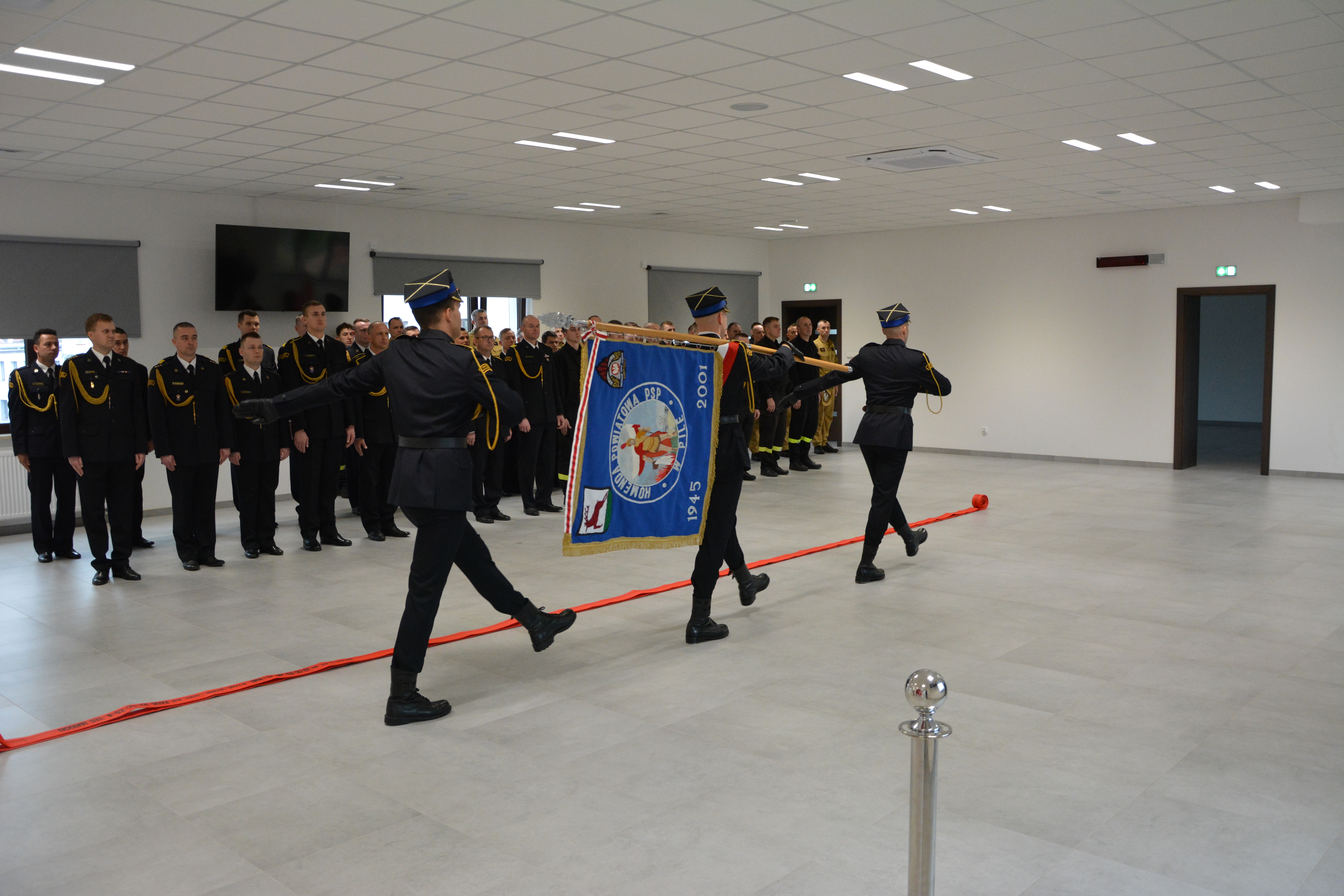 Uroczystość rozpoczęła się od złożenia meldunku, przez dowódcę uroczystości mł. bryg. Grzegorza Orłowskiego, Komendantowi Powiatowemu Państwowej Straży Pożarnej w Pile mł. bryg. Pawłowi Kamińskiemu, po czym odegrano hymn państwowy.