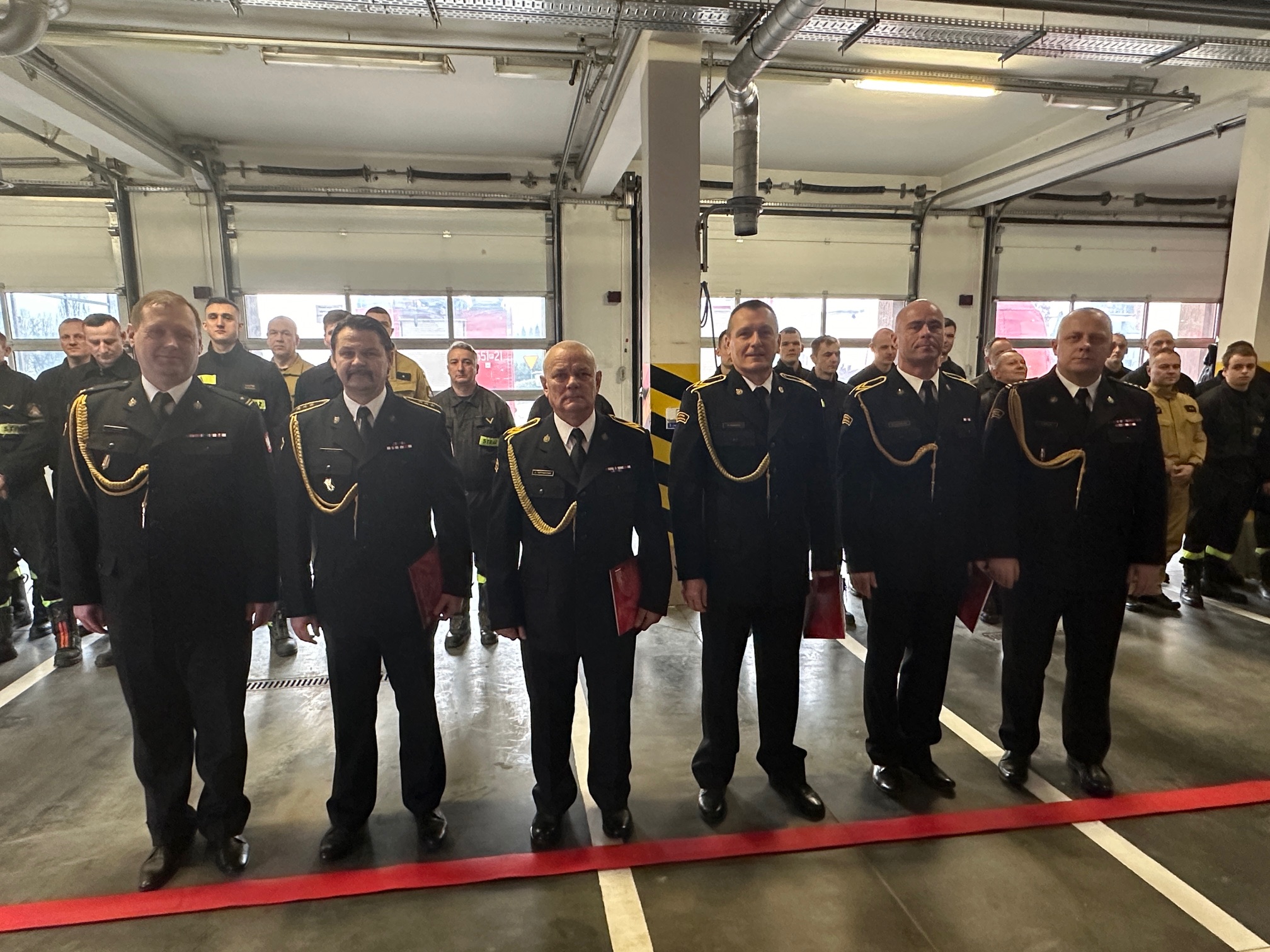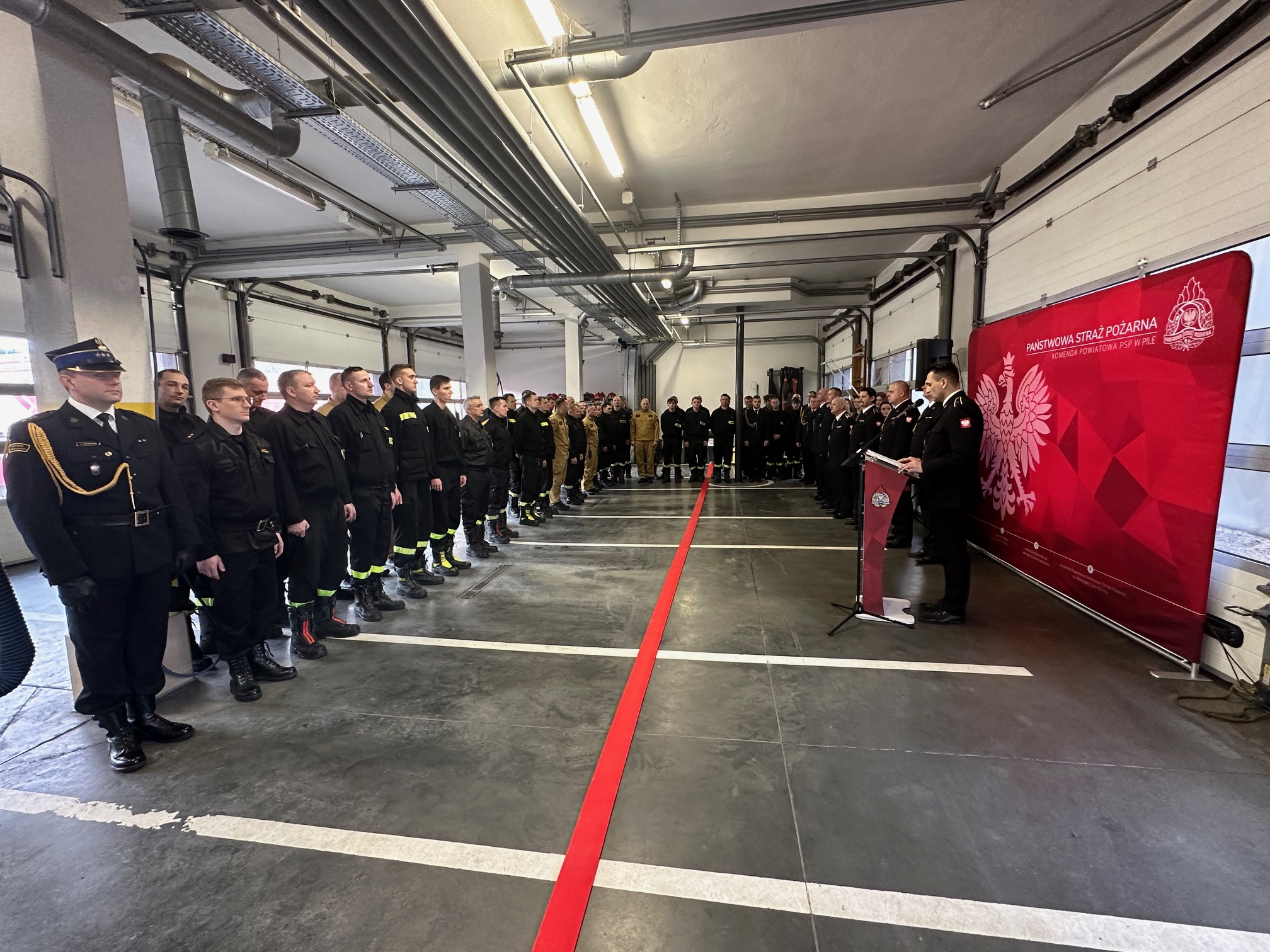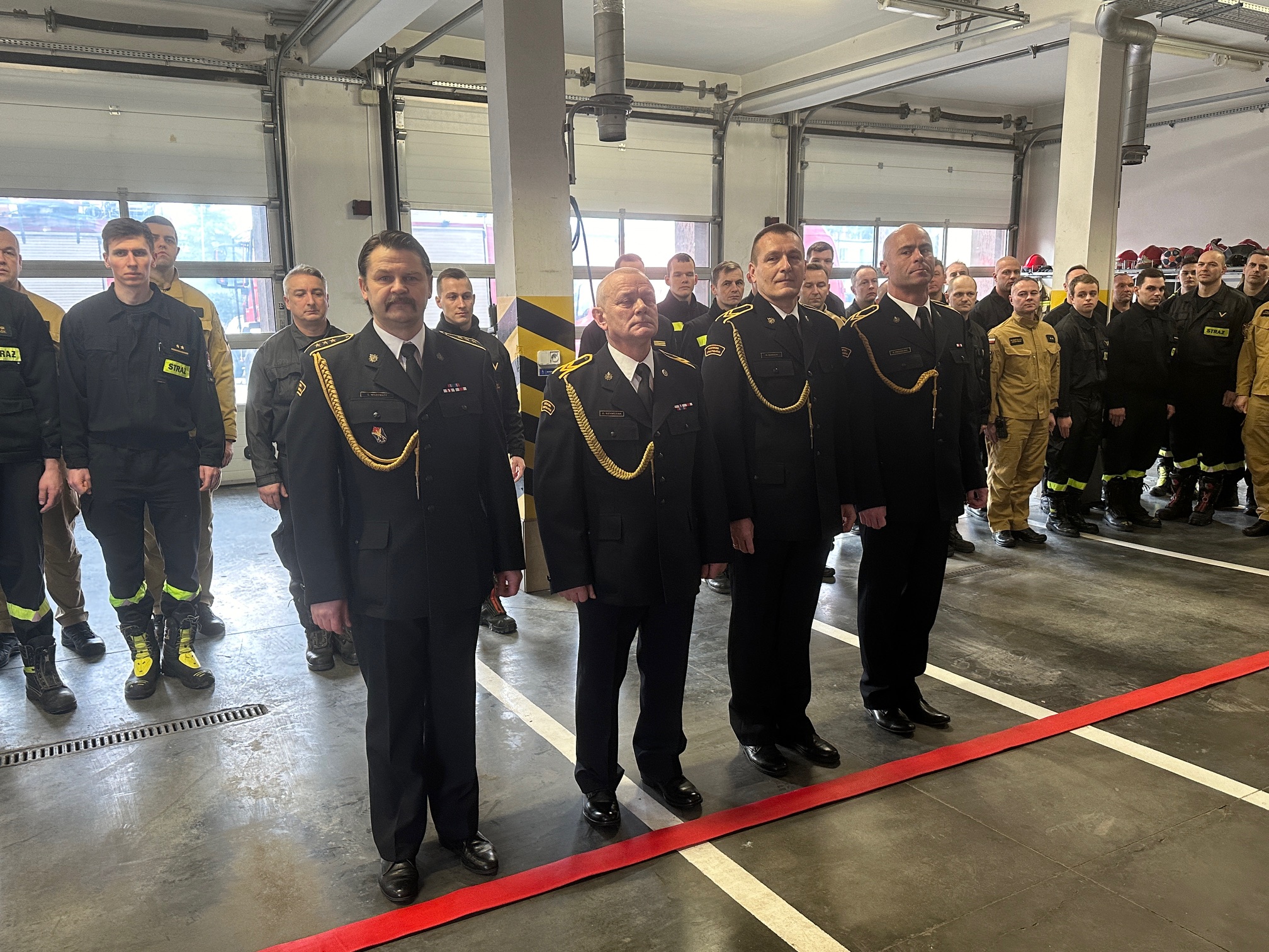 W dniu 14 lutego 2024 roku w Jednostce Ratowniczo-Gaśniczej Państwowej Straży Pożarnej Nr 1 w Pile, odbyła się uroczysta zbiórka związana z zakończeniem służby przez czterech funkcjonariuszy Komendy Powiatowej PSP w Pile: