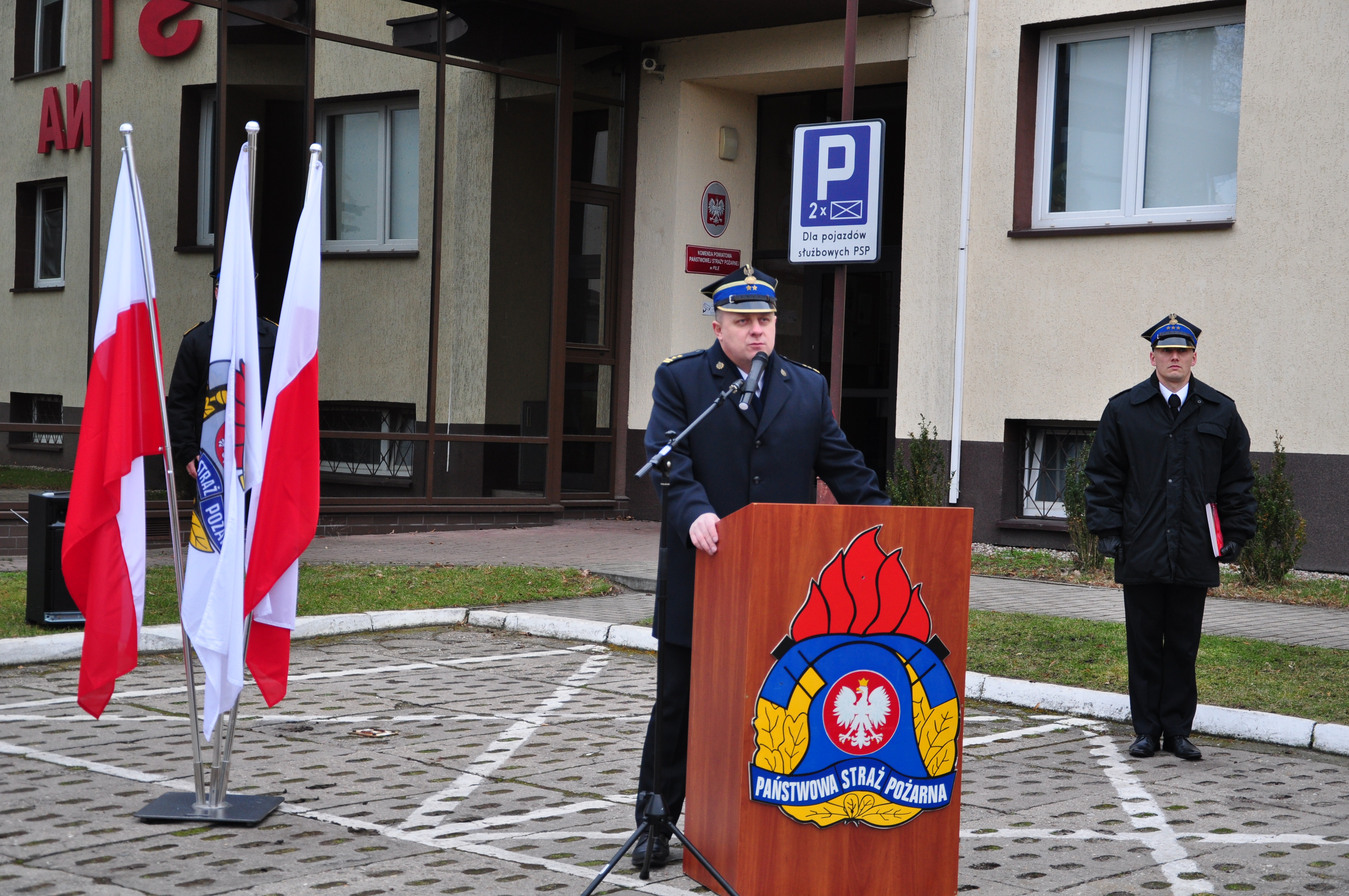 Komendant Powiatowy Państwowej Straży Pożarnej w Pile bryg. Jarosław Kołak w swoim przemówieniu przedstawił krótkie charakterystyki służb, podziękował odchodzącym strażakom w imieniu funkcjonariuszy i pracowników cywilnych za wieloletnią służbę na rzecz ochrony przeciwpożarowej, a także życzył im realizacji planów w nowym etapie życia.