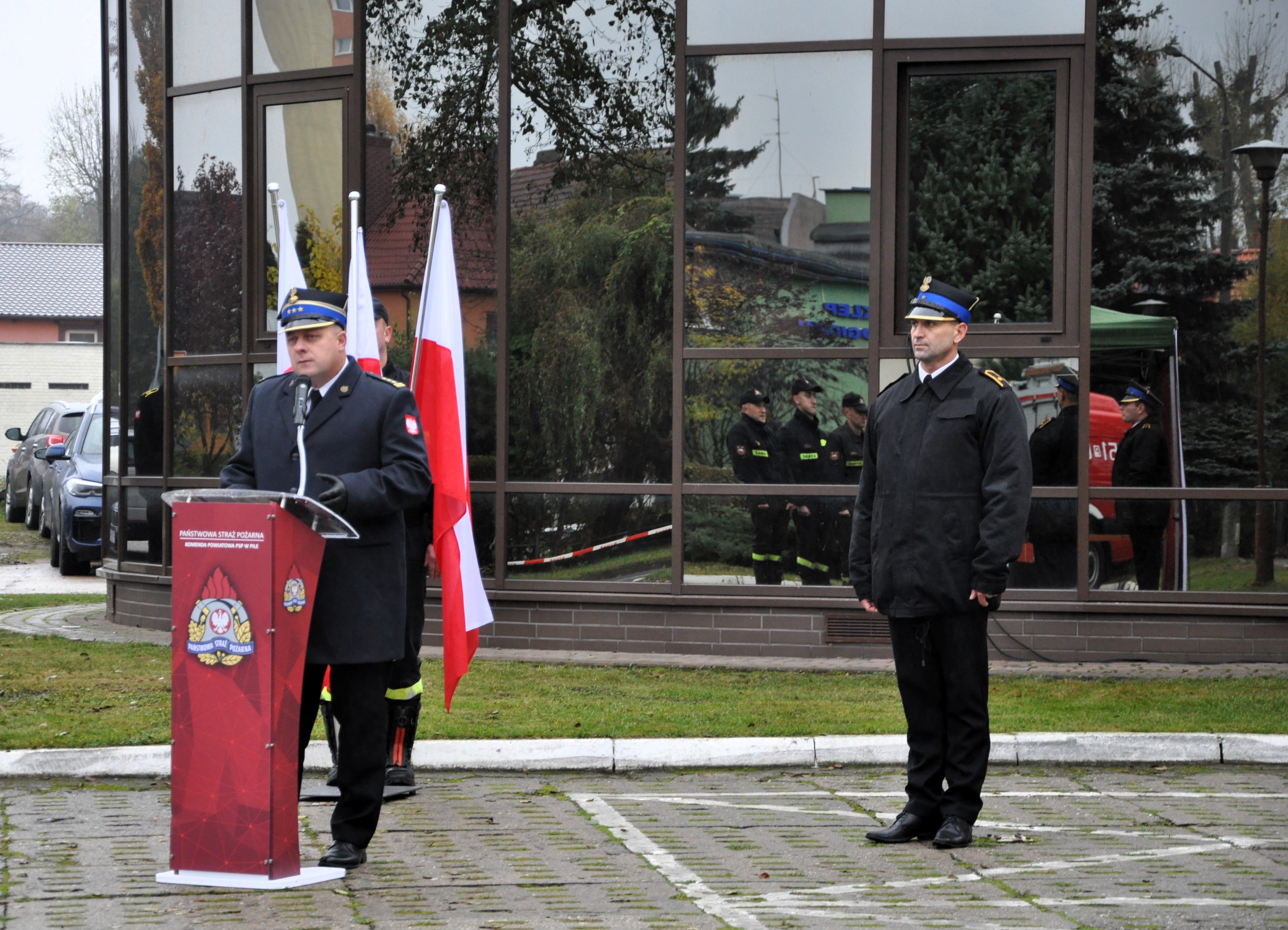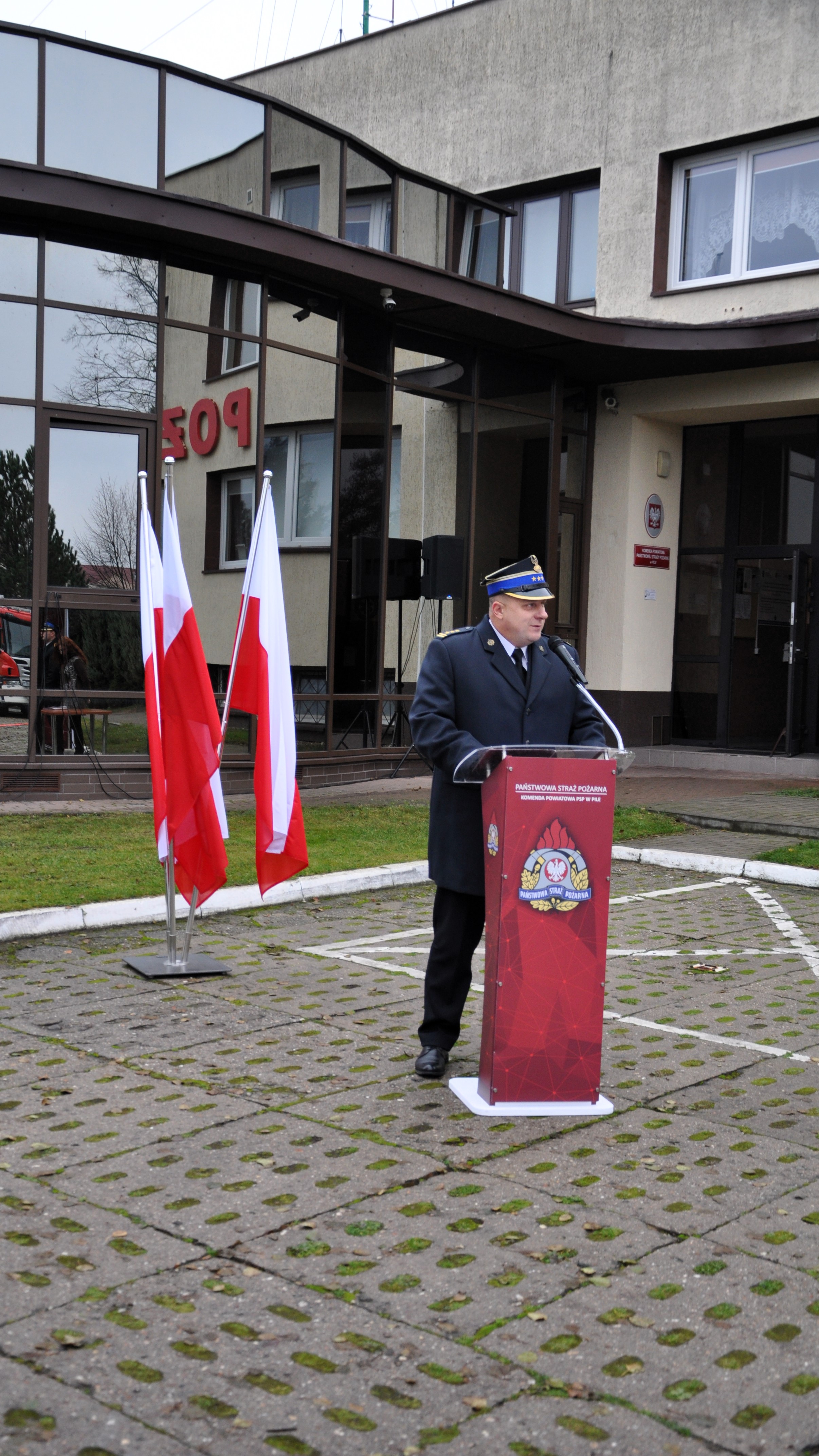 Komendant Powiatowy PSP w Pile przywitał zebranych funkcjonariuszy oraz pracowników cywilnych, a także dh Tomasza Marca – Wiceprezesa Zarządu Powiatowego ZOSP RP w Pile, który w imieniu strażaków-ochotników uczestniczył w uroczystości.