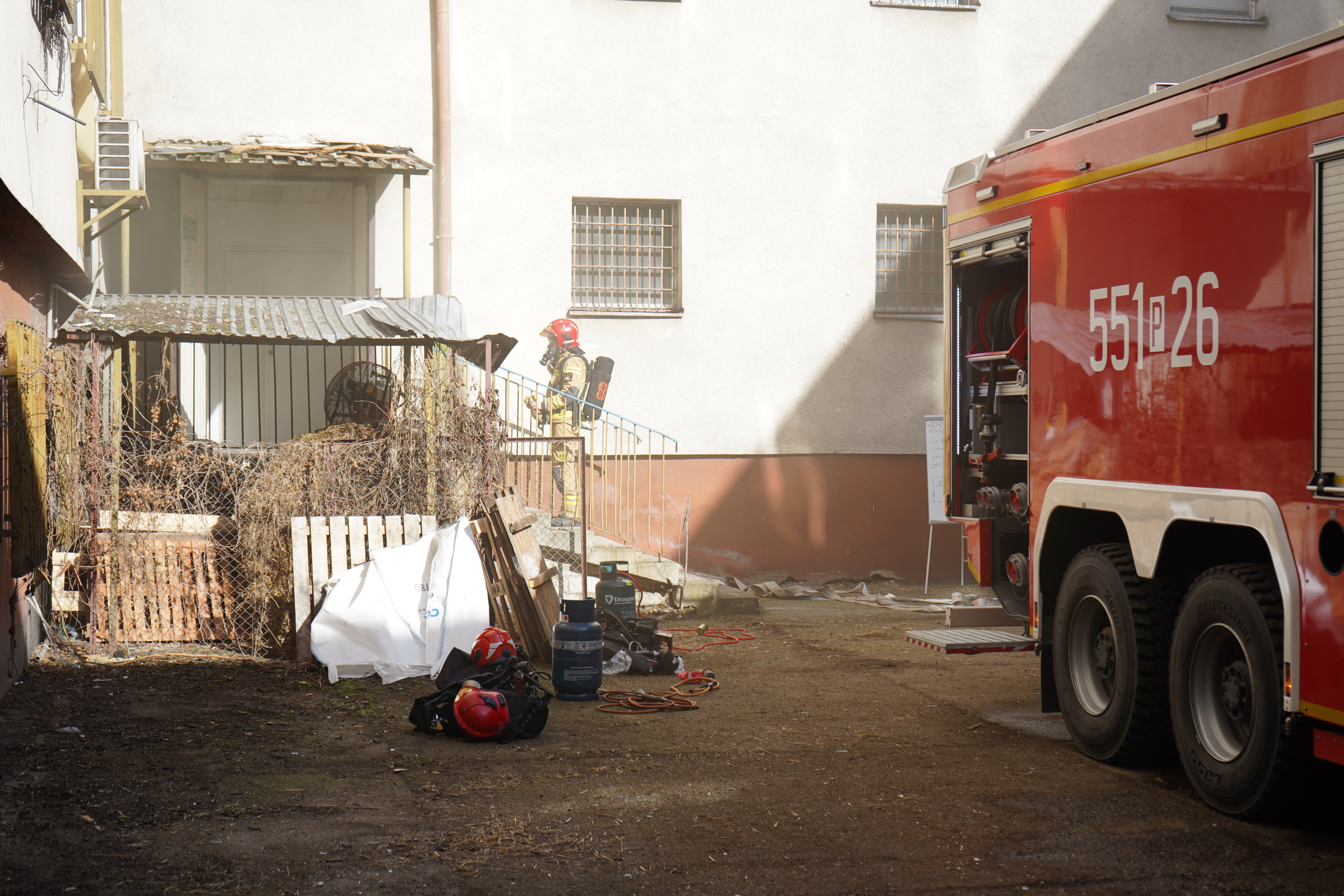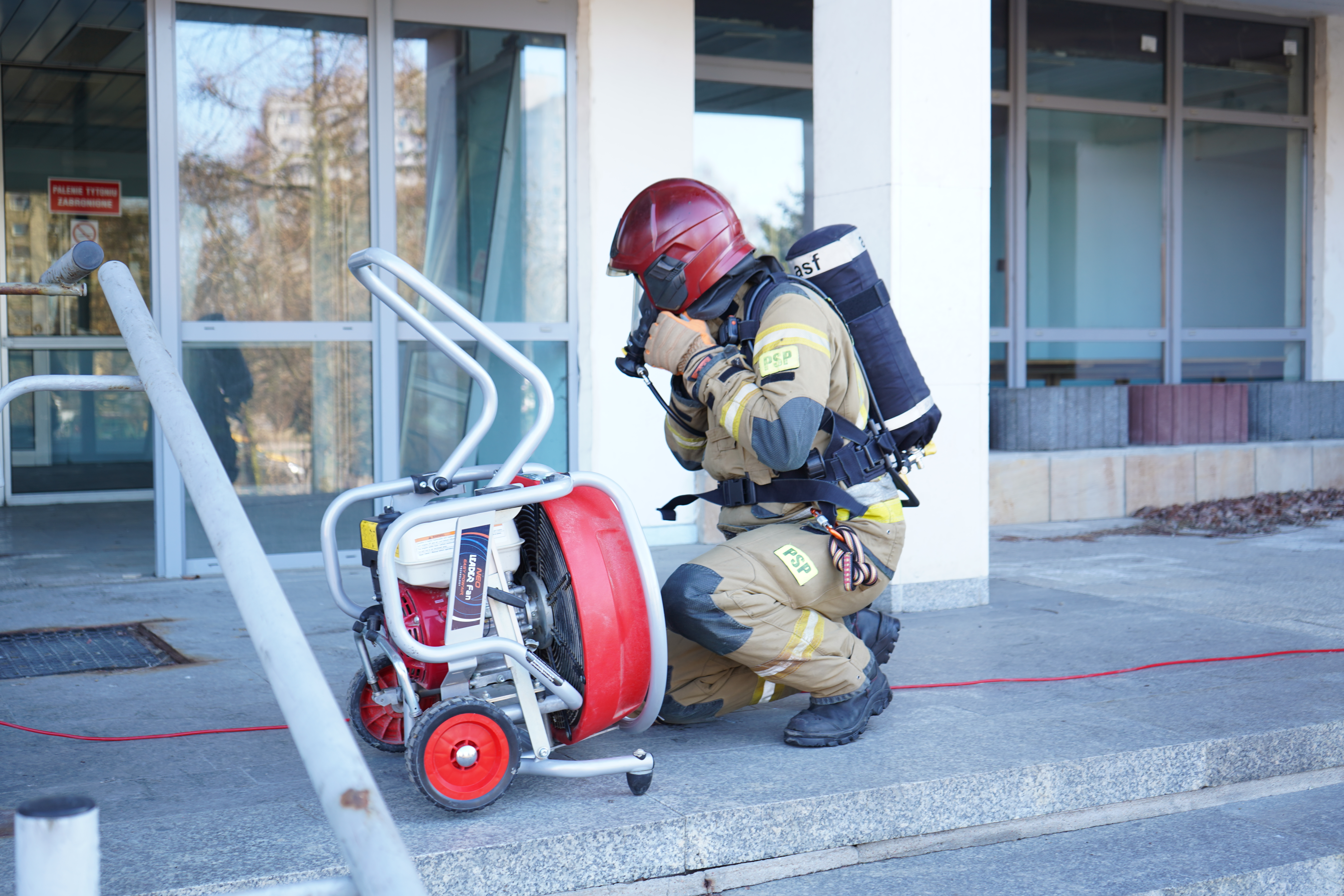 - Pierwszy z nich dotyczył wentylacji sekwencyjnej, podczas której strażacy doskonalili umiejętność prawidłowego wyznaczania kolejności oddymiania pomieszczeń oraz utrzymania odpowiedniego przepływu powietrza.