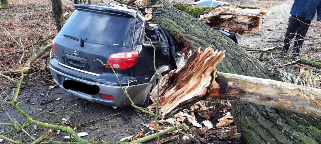 Do najgroźniejszego zdarzenia doszło w miejscowości Śmiłowo, gdzie na jadący samochód przewróciło się drzewo, niszcząc kabinę wozu z pasażerami w środku. Obie osoby wydobyto na zewnątrz, strażacy udzielili im kwalifikowanej pierwszej pomocy. Karetki pogotowia poszkodowanych zabrały do szpitala.