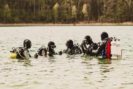 Zmagań pod wodą nie zabrakło. 10 nurków zeszło pod taflę wody jeziora Płotki i przystąpiło do poszukiwań ukrytych jajek.