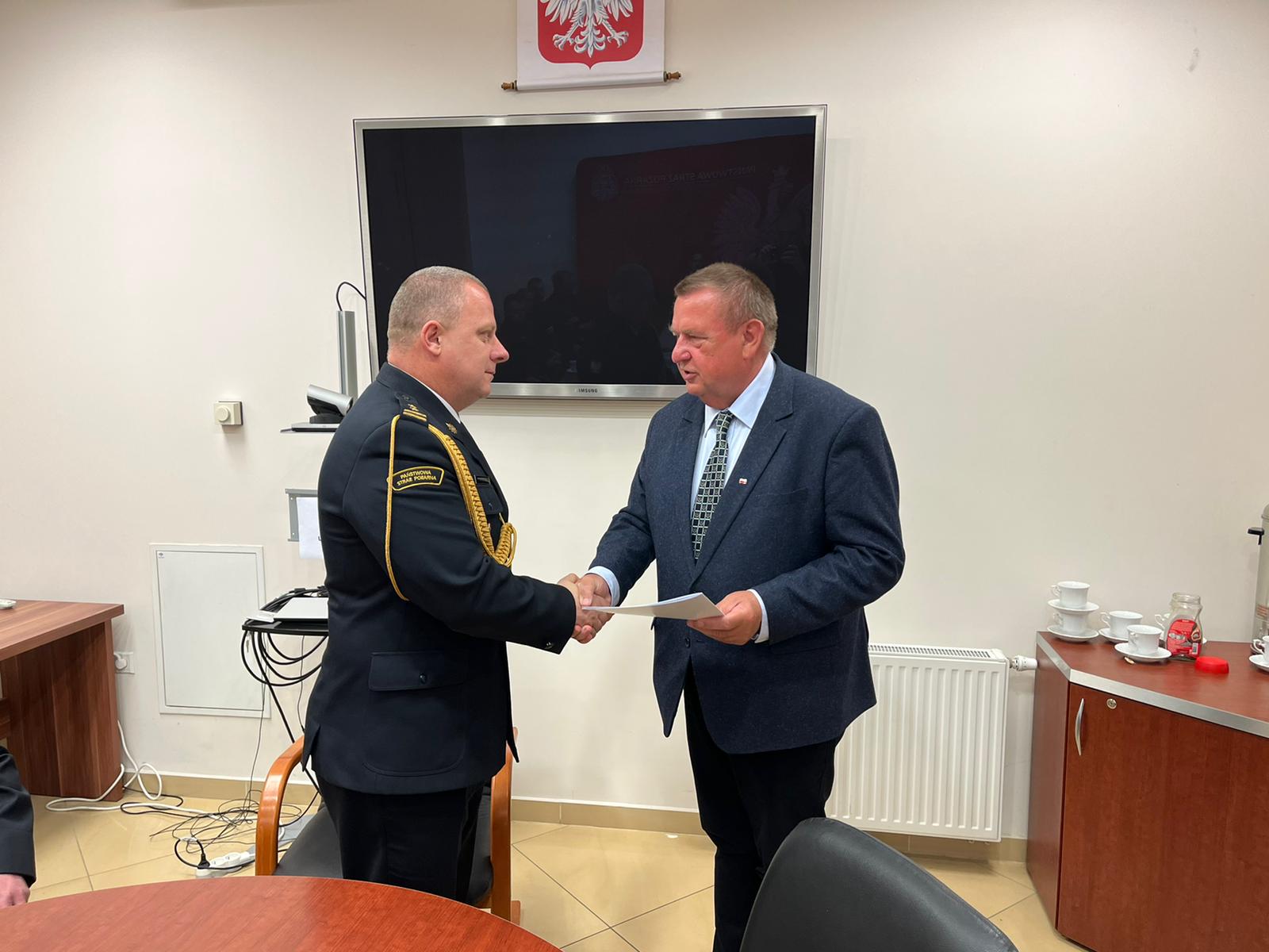 Z osobistą wizytą i życzeniami pilskich strażaków odwiedzili Krzysztof Czarnecki – Poseł na Sejm RP wraz z Adamem Bogrycewiczem – Radnym Sejmiku Wielkopolskiego. Spotkanie to było okazją do przekazania okolicznościowych listów, a także zapoznaniem się z prowadzoną inwestycją budowy nowej strażnicy dla Jednostki Ratowniczo-Gaśniczej PSP nr 1 w Pile.