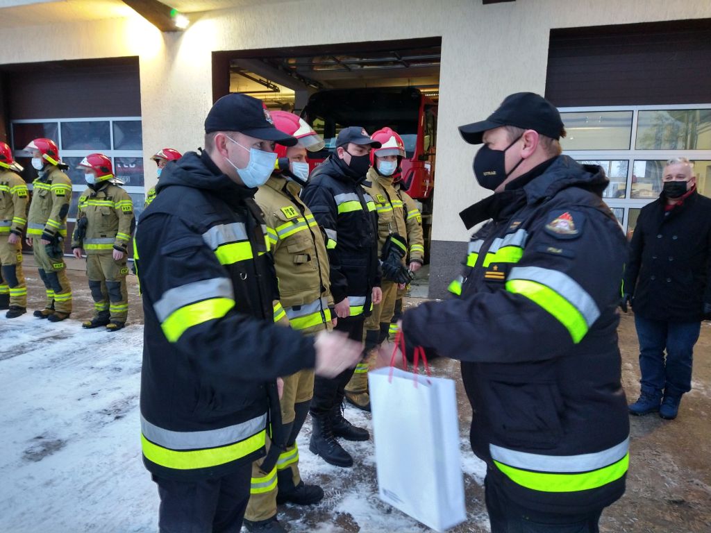Okolicznościowe grawertony oraz flagę Polski otrzymała grupa 13 funkcjonariuszy tutejszej Komendy, uczestnicząca w misji zagranicznej gaszenia wielkopowierzchniowych pożarów lasów w Grecji, na przełomie sierpnia i września 2021 roku, w ramach międzynarodowego modułu do gaszenia pożarów lasów z ziemi GFFFV.