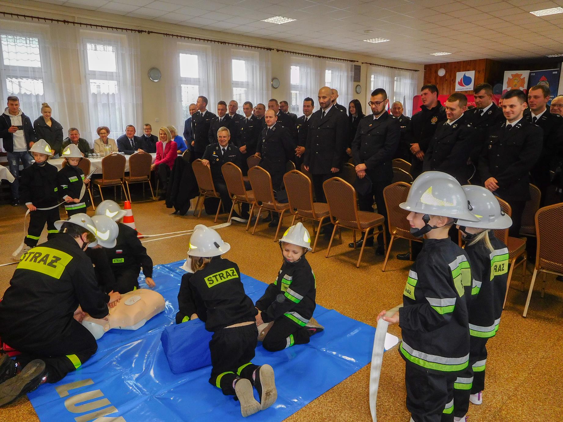 W trakcie uroczystej zbiórki członkowie Dziecięcej Drużyny Pożarniczej z jednostki OSP Osiek nad Notecią przeprowadzili krótki pokaz umiejętności ratowniczych.