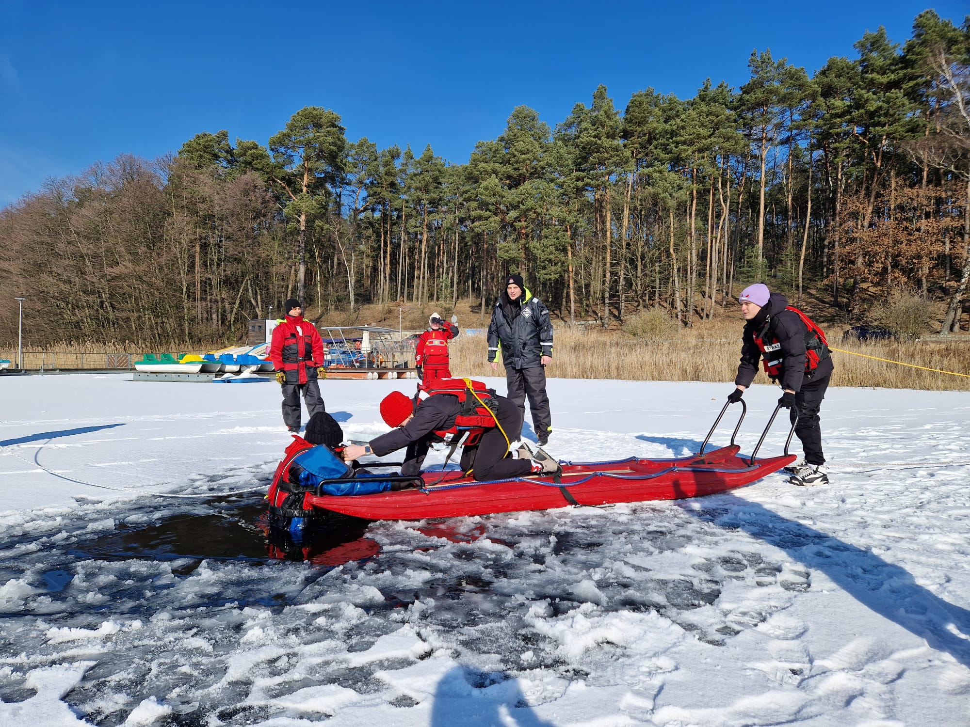 W dniu 20 lutego 2025r. w ramach współpracy Komendy Powiatowej Państwowej Straży Pożarnej w Pile oraz Akademii Nauk Stosowanych im. Stanisława Staszica w Pile zorganizowano wspólne ćwiczenia na jeziorze Płocie z zakresu ratownictwa lodowego na poziomie podstawowym.