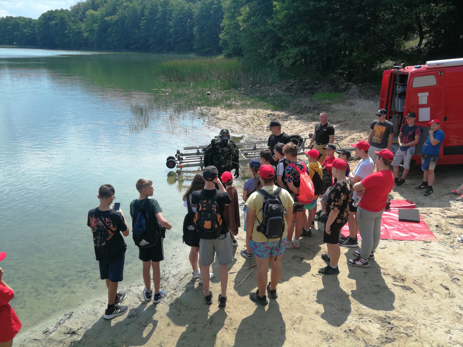 W trakcie wizyty, grupa 42 druhów poznała specyfikę oraz zakres działalności strażaków nurków. Przy okazji poruszone zostały tematy związane z bezpiecznym wypoczynkiem nad wodą. Następnego dnia pilscy strażacy gościli młodzież z przedmiotowego obozu na terenie macierzystej jednostki. W trakcie odwiedzin strażacy ochotnicy poznali nasza jednostkę oraz mieli możliwość zaliczyć test w komorze dymowej.