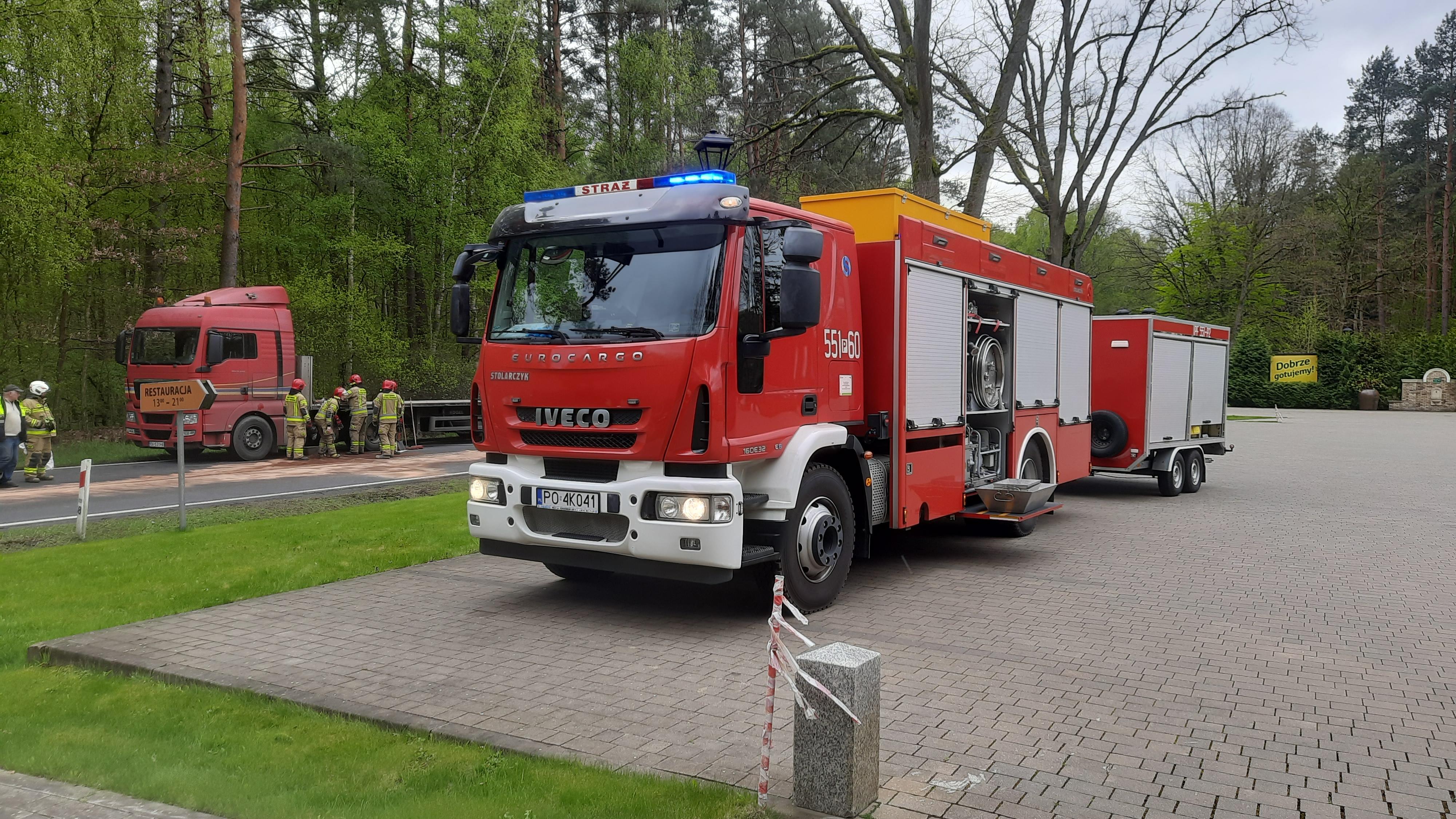 W poniedziałek, 22 kwietnia 2024 roku przed godziną 10:00 Stanowisko Kierowania Komendanta Powiatowego PSP w Pile, otrzymało zgłoszenie o wycieku oleju napędowego z ciągnika siodłowego na DK nr 11 koło miejscowości Dobrzyca.