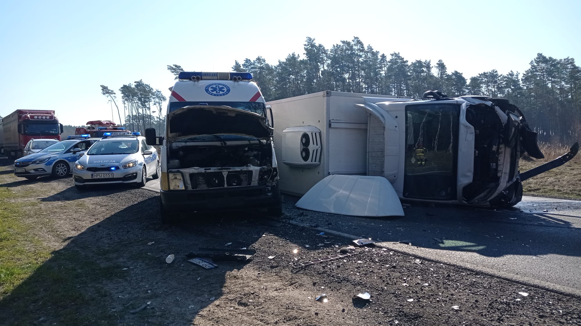 W poniedziałek, 21 marca 2022 roku, ok. godz. 9:30 na drodze DK-10 pomiędzy miejscowościami Piła a Jeziorki doszło do zderzenia dwóch samochodów dostawczych i karetki pogotowia przewożącej pacjenta.