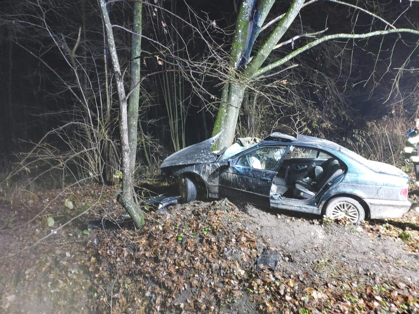 Po przybyciu na miejsce zdarzenia straży pożarnej stwierdzono, że na łuku drogi z niewyjaśnionych jak dotąd okolicznościach, doszło do zderzenia, w którym auto osobowe wypadło z drogi i uderzyło w drzewo.